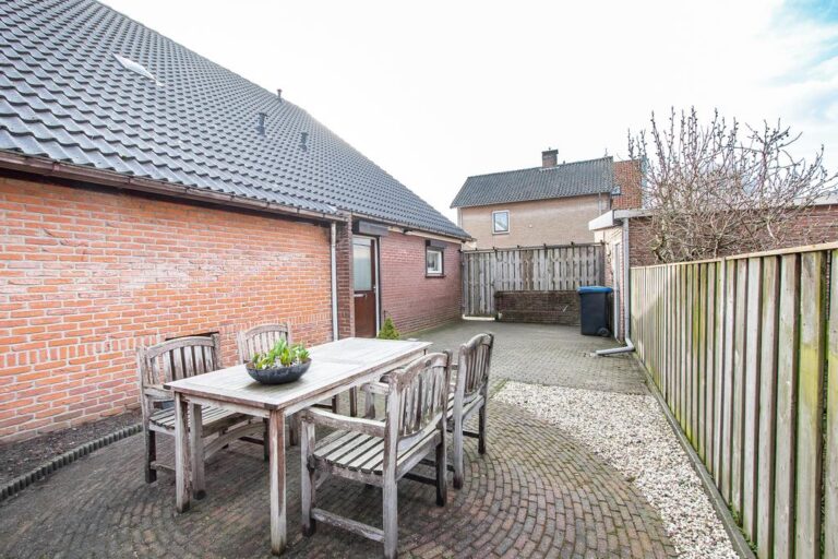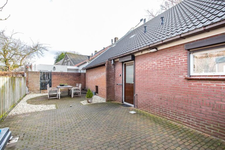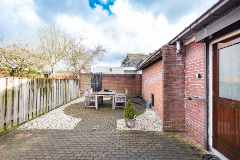 Aan de achterzijde bevindt zich de privacy biedende achtertuin met een zonnige ligging op het westen. De tuin is onderhoudsvriendelijk aangelegd met sierbestrating, grind, houten schuttingdelen en is middels achterom bereikbaar.