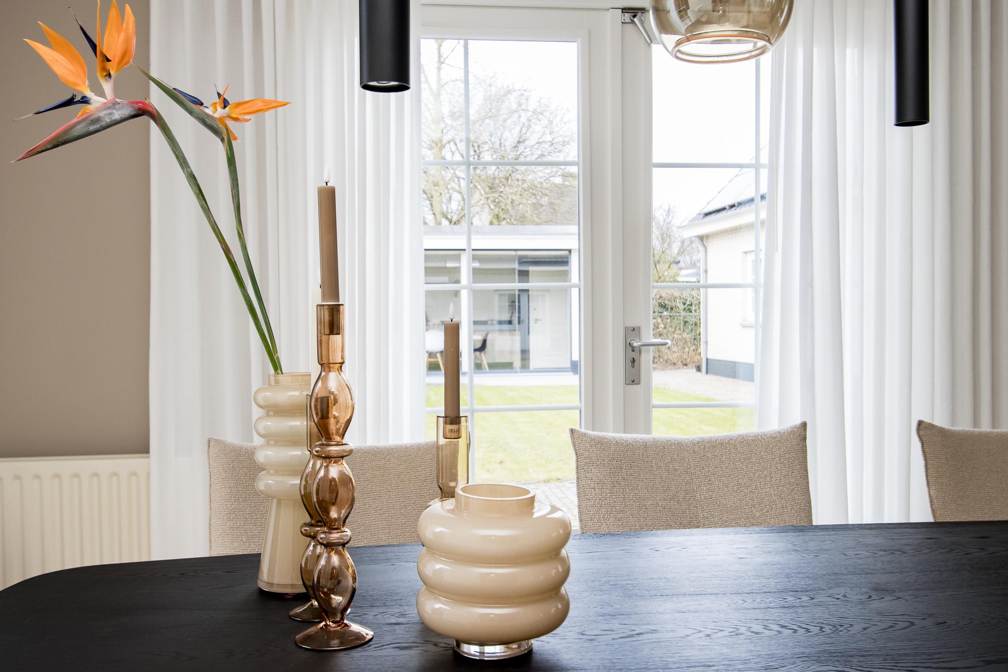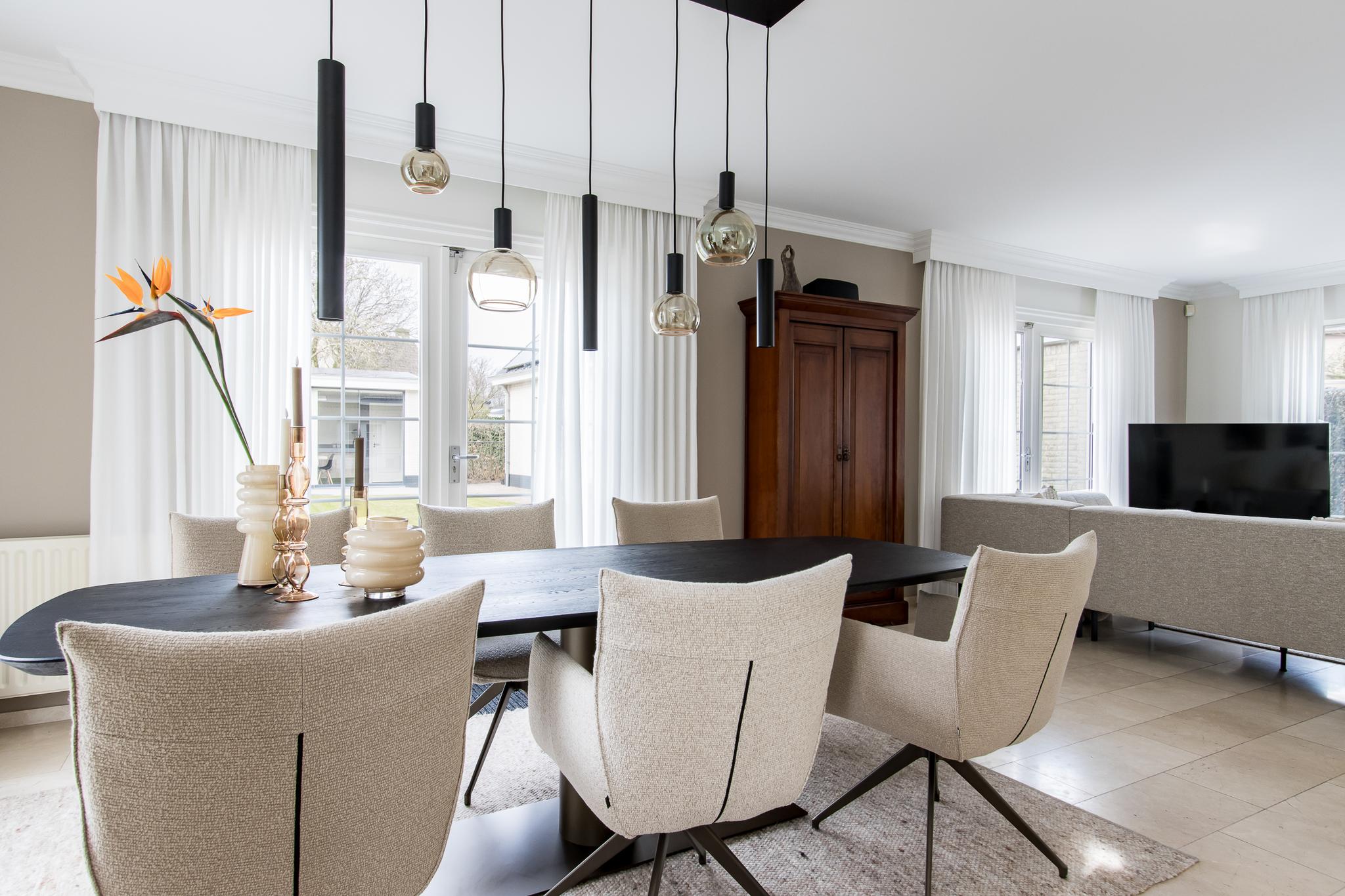 Binnen treft u een lichte en sfeervolle living met openslaande deuren, grote raampartijen met fraaie roedeverdeling. De luxe open keuken vloeit naadloos over in de eetkamer en living en verbindt dankzij de dubbele openslaande tuindeuren het binnenleven met het terras en de achtertuin. De begane grond biedt extra mogelijkheden dankzij een praktische werk-/hobbyruimte, ideaal als thuiskantoor, praktijkruimte of speelkamer.