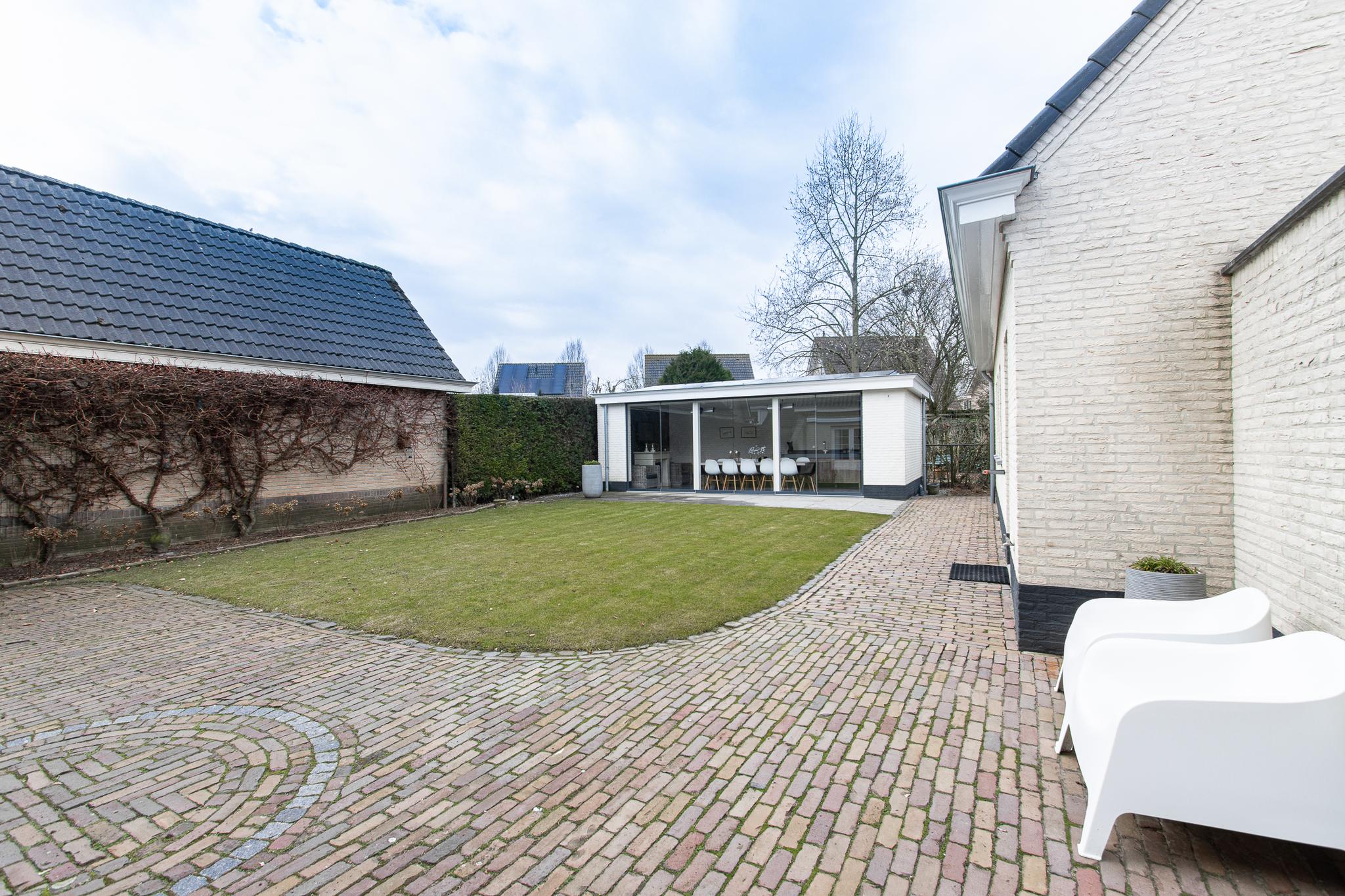 Buiten geniet u van rust en privacy in de fraai aangelegde tuin met gazon, sierbestrating en sfeervolle beplanting.