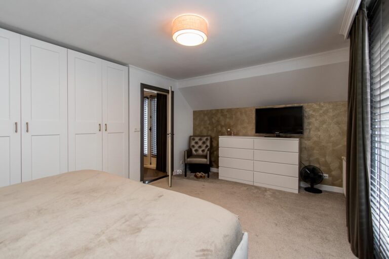 Eerste verdieping: de overloop geeft toegang tot 3 ruime slaapkamers waarvan de masterbedroom beschikt over vaste kasten en een balkon. Verder beschikt deze verdieping over een royale badkamer met ligbad, douche, wastafel en toilet en is er een berging met de CV- installatie.