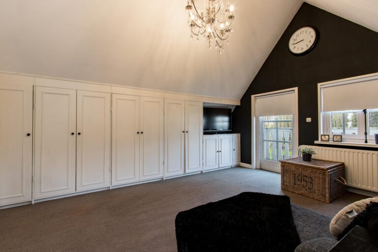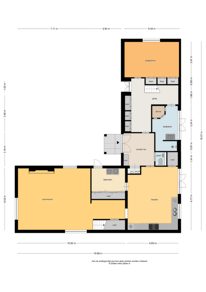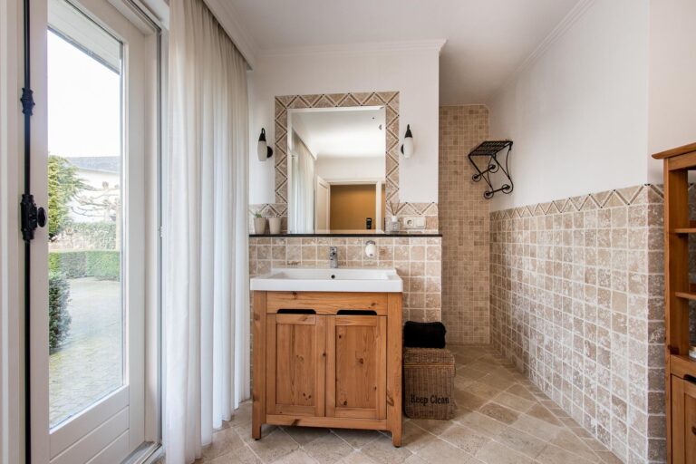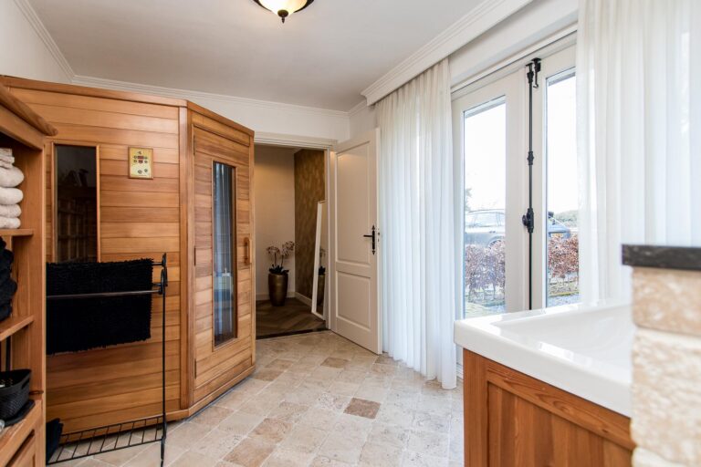 Begane grond: via de fraaie entree met dubbele deuren bereikt u de royale ontvangsthal met meterkast en het toilet. Aan de linkerzijde geeft de hal toegang tot een ruime gang met vaste kasten, openslaande deuren en trapopgang naar de open zolderverdieping en berging. Vanuit de gang heeft u toegang tot de slaapkamer en luxe badkamer op de begane grond. De badkamer is voorzien van openslaande deuren naar de tuin, inloopdouche, badkamermeubel en sauna. Aan de rechterzijde geeft de hal toegang tot de ruim opgezette woonkeuken met landelijke hoekkeuken v.v. diverse inbouwapparatuur, waaronder: ………… Openslaande deuren zorgen voor veel lichtinval en bieden directe toegang tot het terras. Aangrenzend bevindt zich praktische bijkeuken met witgoedaansluiting. Vanuit de hal is de sfeervolle woonkamer te bereiken. De ruime living geniet dankzij de vele raampartijen en openslaande deuren van een unieke sfeer van ruimte en licht. Hier bevindt zich de trapopgang naar de eerste verdieping.