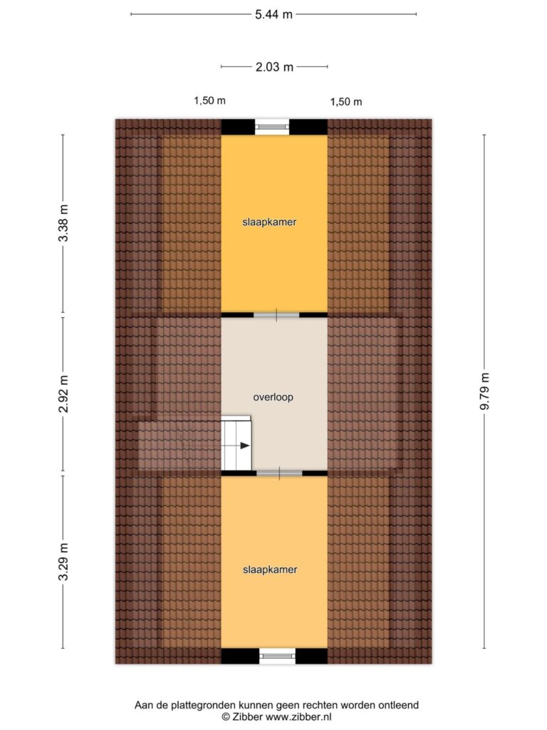 Eerste verdieping: de overloop geeft toegang tot 2 slaapkamers.