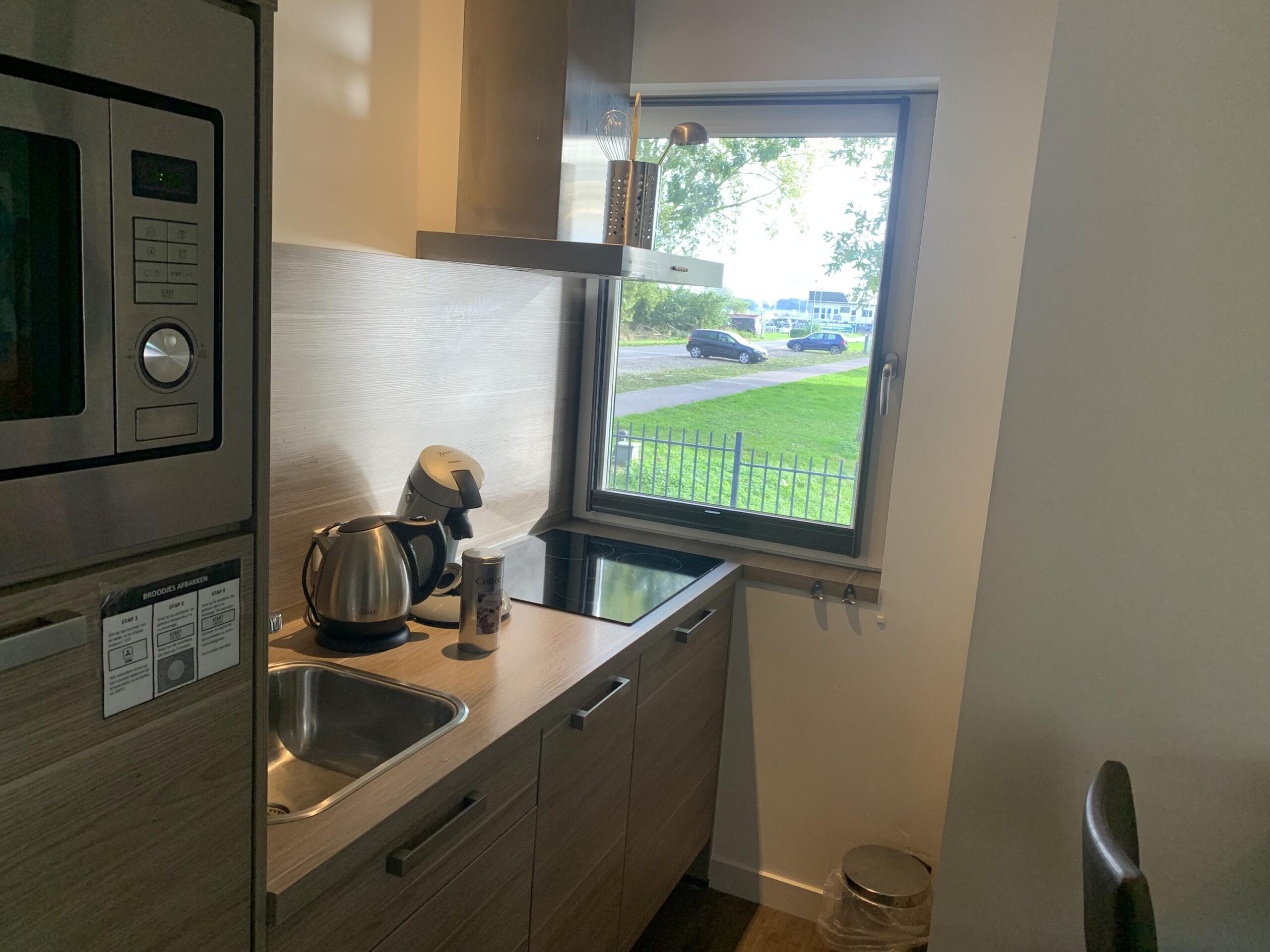 De ligging in het havengebied, met directe toegang tot het strand van de 2e plas, biedt een uniek perspectief