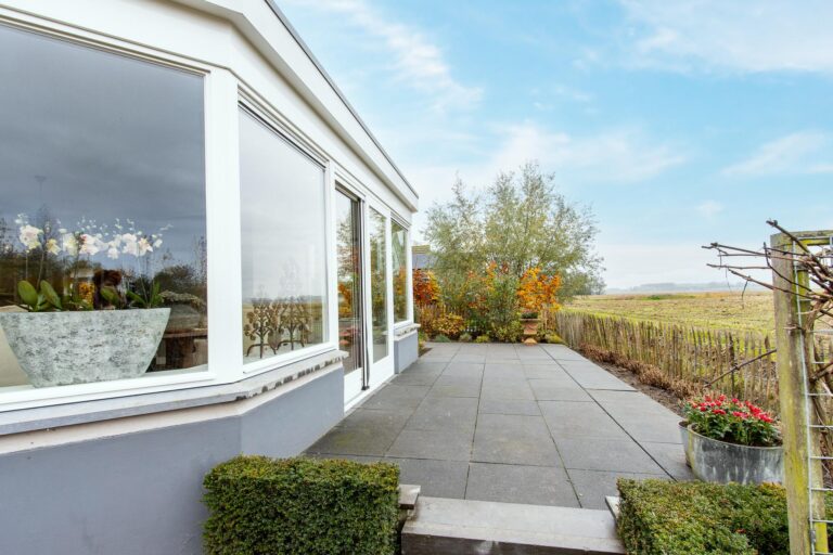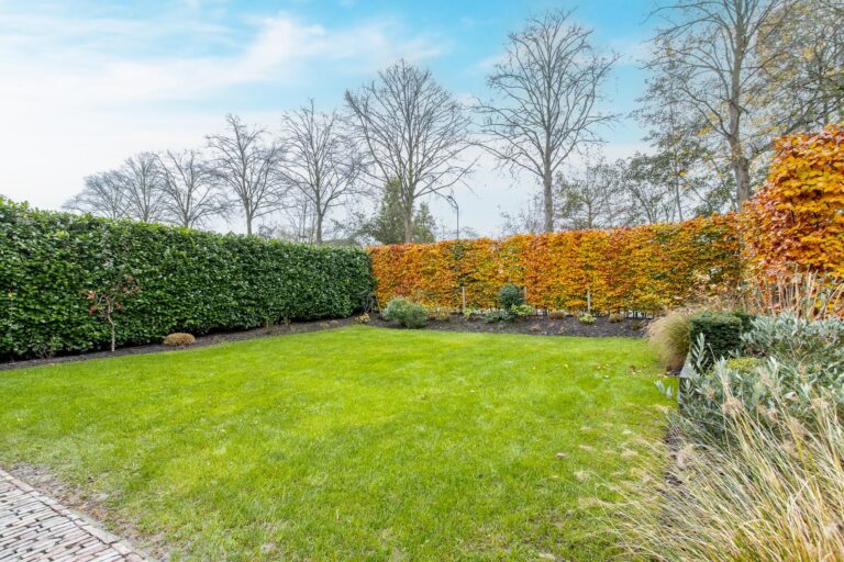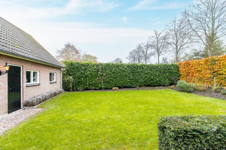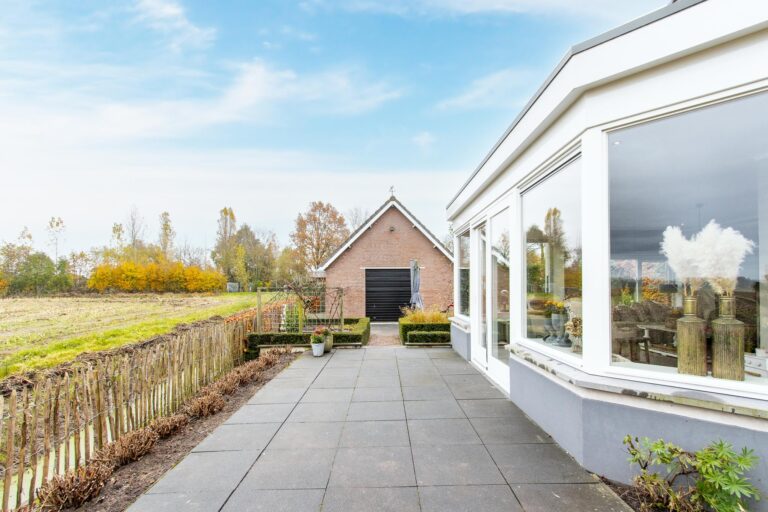 De rondom gelegen tuin is een oase van rust, waar privacy en natuur hand in hand gaan. De combinatie van sierbestrating en moderne terrastegels zorgt voor een eigentijdse uitstraling en een verzorgde sfeer. Het ruime terras biedt een fantastische plek om te ontspannen en te genieten van het weidse uitzicht over de omliggende landerijen. Hier ervaart u de rust van het buitenleven in volledige privacy. De tuin is met zorg aangelegd en biedt naast sierbeplanting, kleurrijke plantenborders en groene struikgewassen ook praktische voorzieningen. De oprit met siergrind leidt naar de ruime garage en biedt parkeergelegenheid voor meerdere auto’s. Daarnaast is er aan de rechtervoorzijde van de woning een aparte parkeerplaats met ruimte voor twee auto’s, ideaal voor gasten of extra voertuigen.