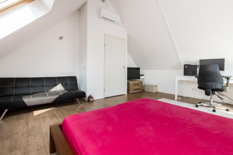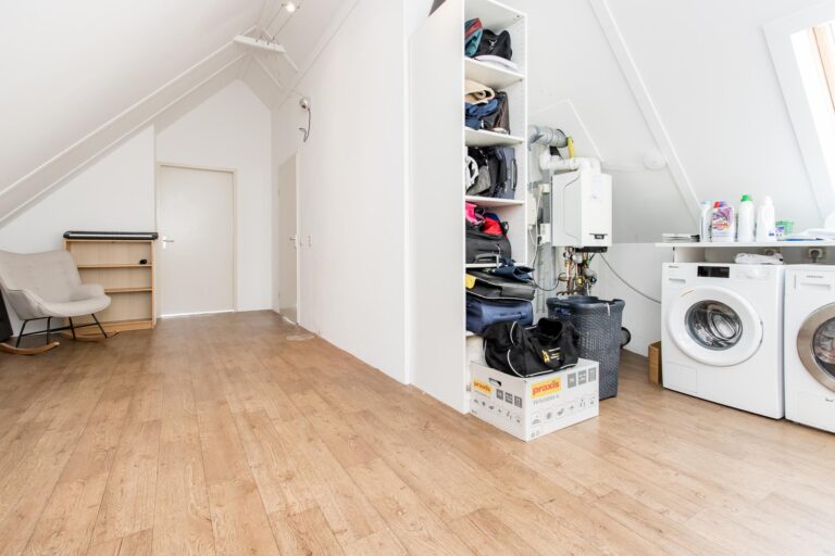 Tweede verdieping: via een vaste trap bereikt u de tweede verdieping, waar een royale zolderkamer is gelegen. Hier vindt u de CV-installatie en de aansluitingen voor de wasmachine en droger. Vanuit de zolderkamer heeft u toegang tot de 4e slaapkamer. Dankzij de dakvensters baadt deze ruimte in een overvloed aan natuurlijk licht.