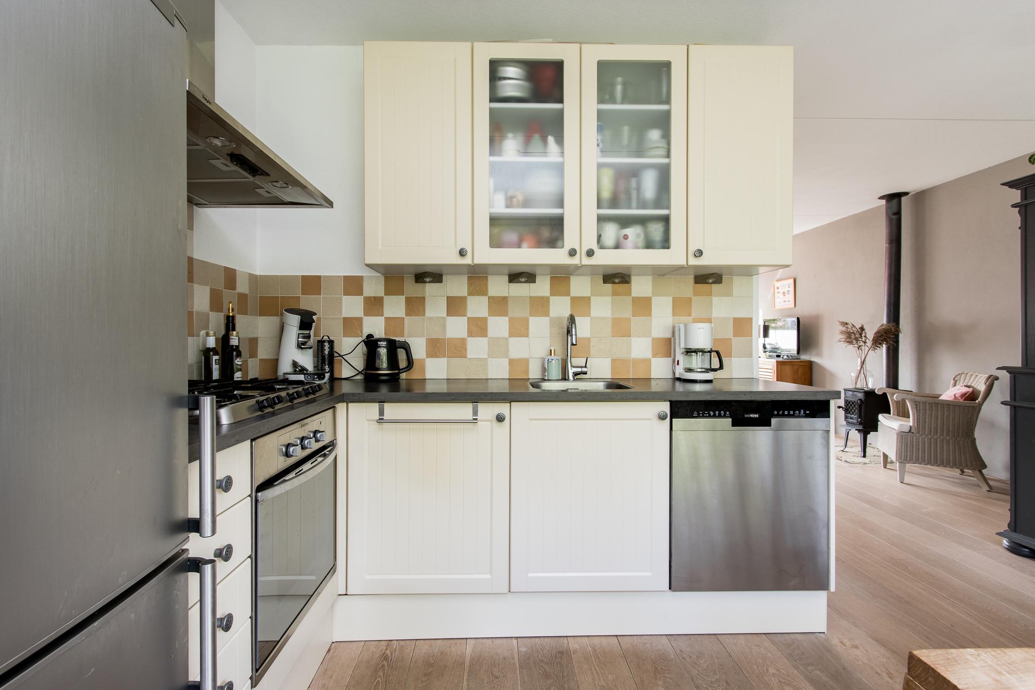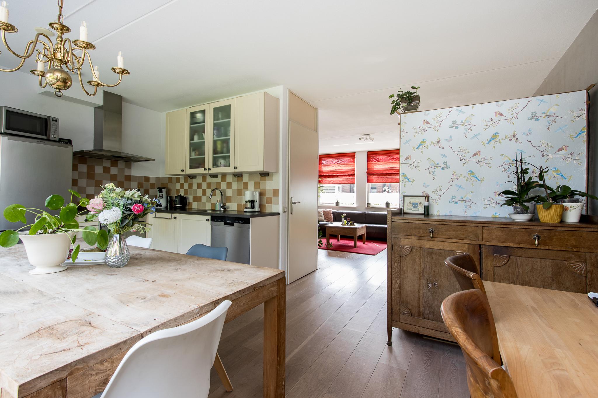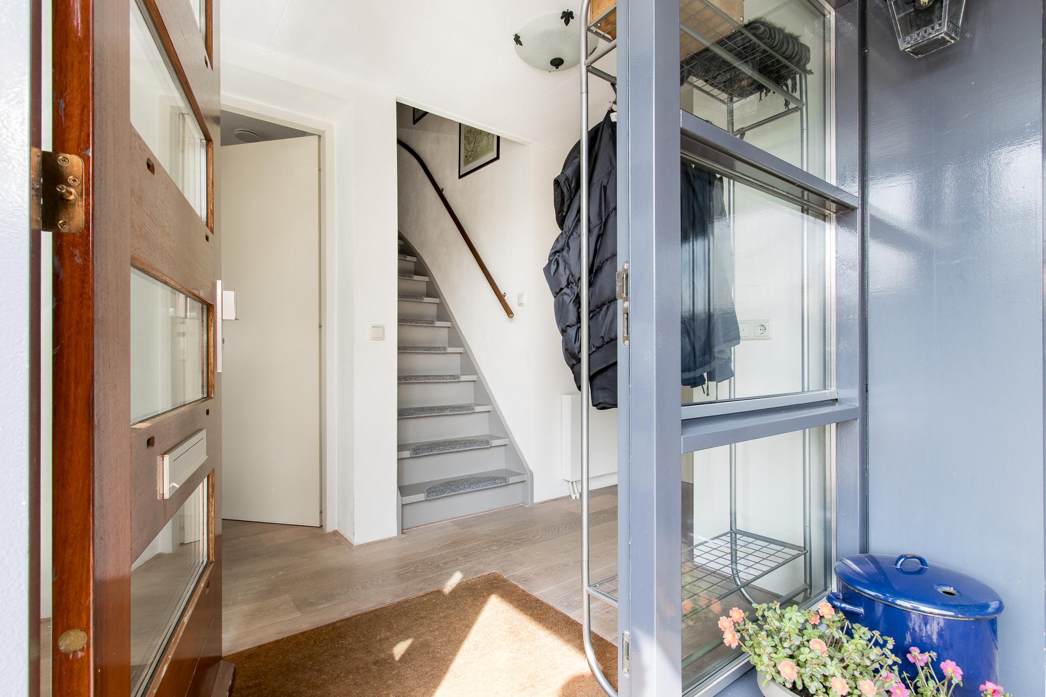 Indeling woonhuis: via de overdekte entree bereikt u de ruime hal met garderobe, meterkast, toiletruimte en trapopgang naar de eerste verdieping. Vanuit de hal is de sfeervolle woonkamer te bereiken, die in open verbinding staat met de keuken aan de achterzijde. De keuken in hoekopstelling is voorzien van diverse inbouwapparatuur, zoals; 5-pits kookplaat, afzuigkap, oven en koelkast. Aangrenzend bevindt zich de bijkeuken met aansluitingen voor het witgoed. Vanuit de bijkeuken is de achtertuin en de garage bereikbaar.