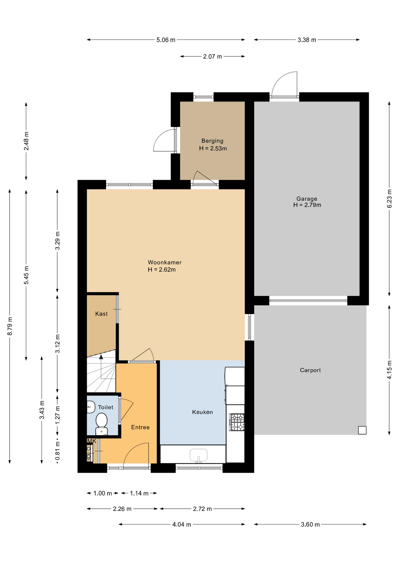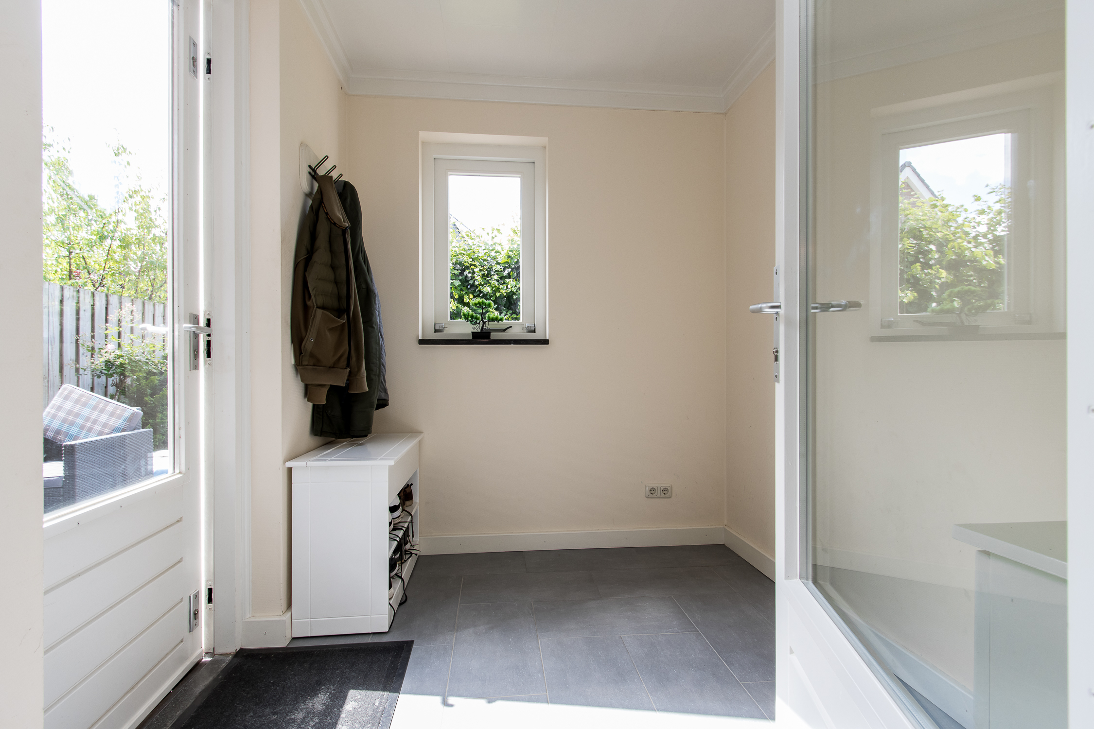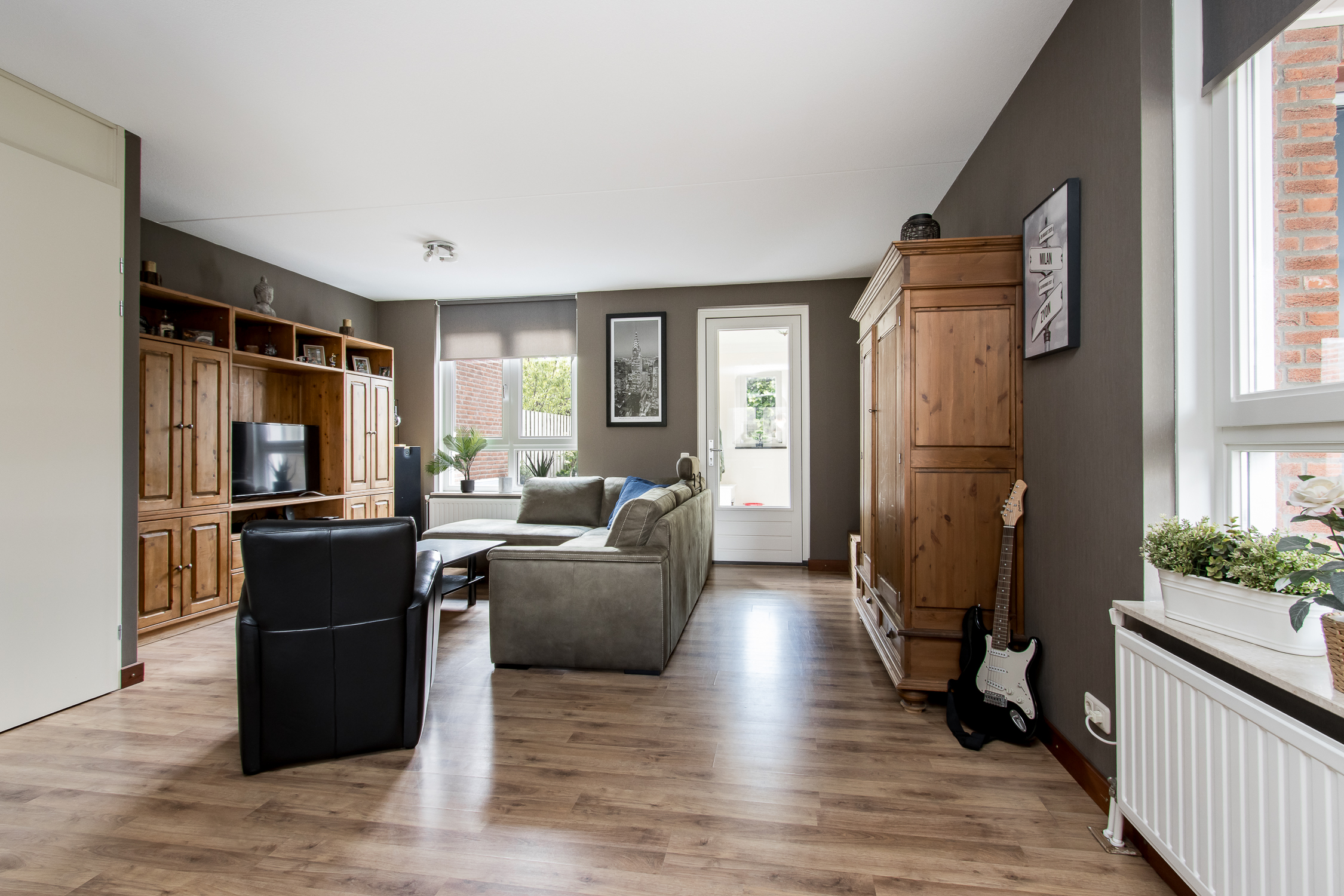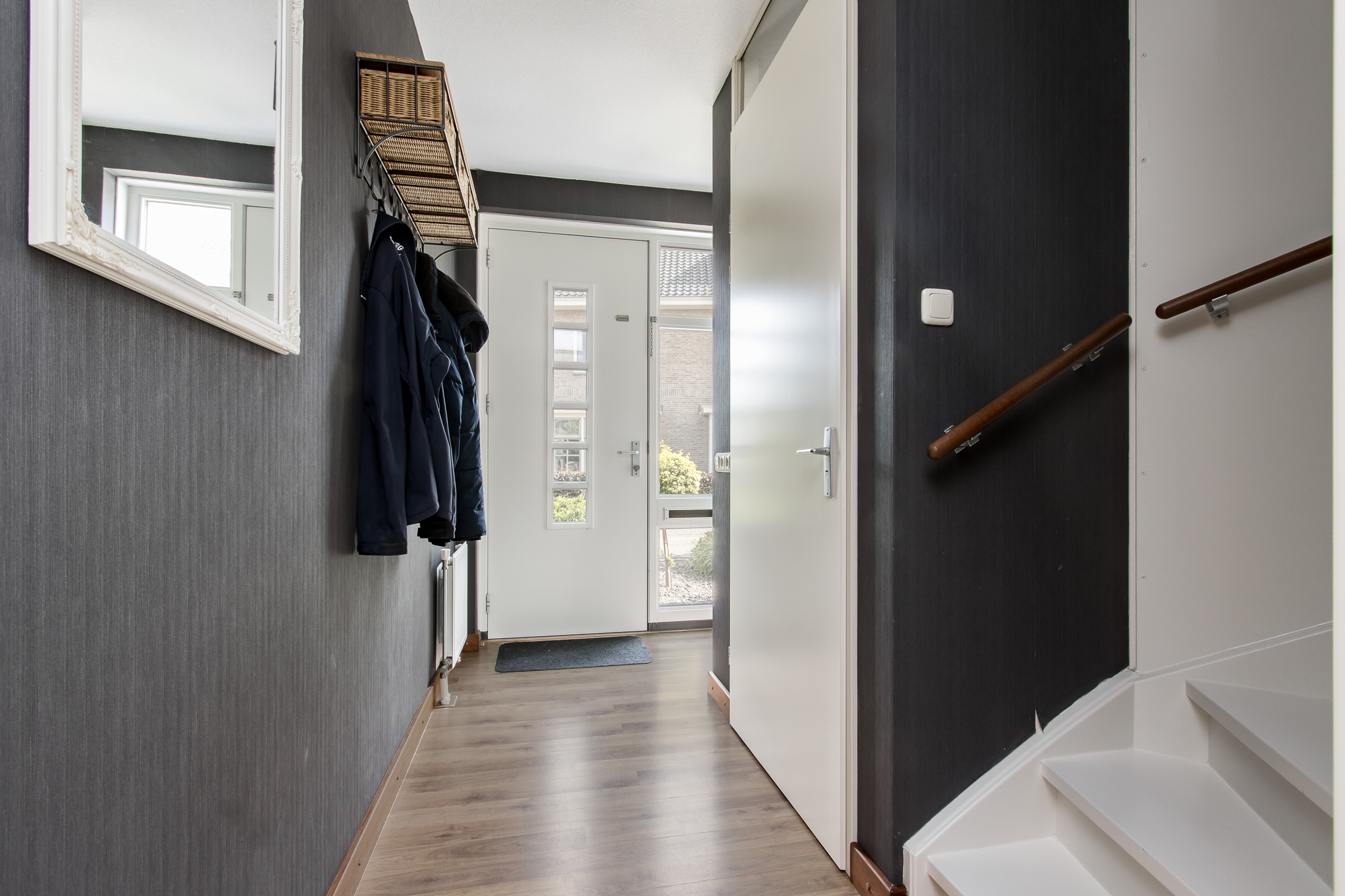 Indeling woning: de entree geeft toegang tot de hal met garderobe, meterkast, toiletruimte en trapopgang naar de eerste verdieping. Vanuit de hal stap je de ruime, tuingerichte woonkamer binnen met aan de voorzijde de open keuken in hoekopstelling. De woonkamer is voorzien van een praktische trapkast en een handige berging aan de achterzijde met toegang naar de achtertuin.