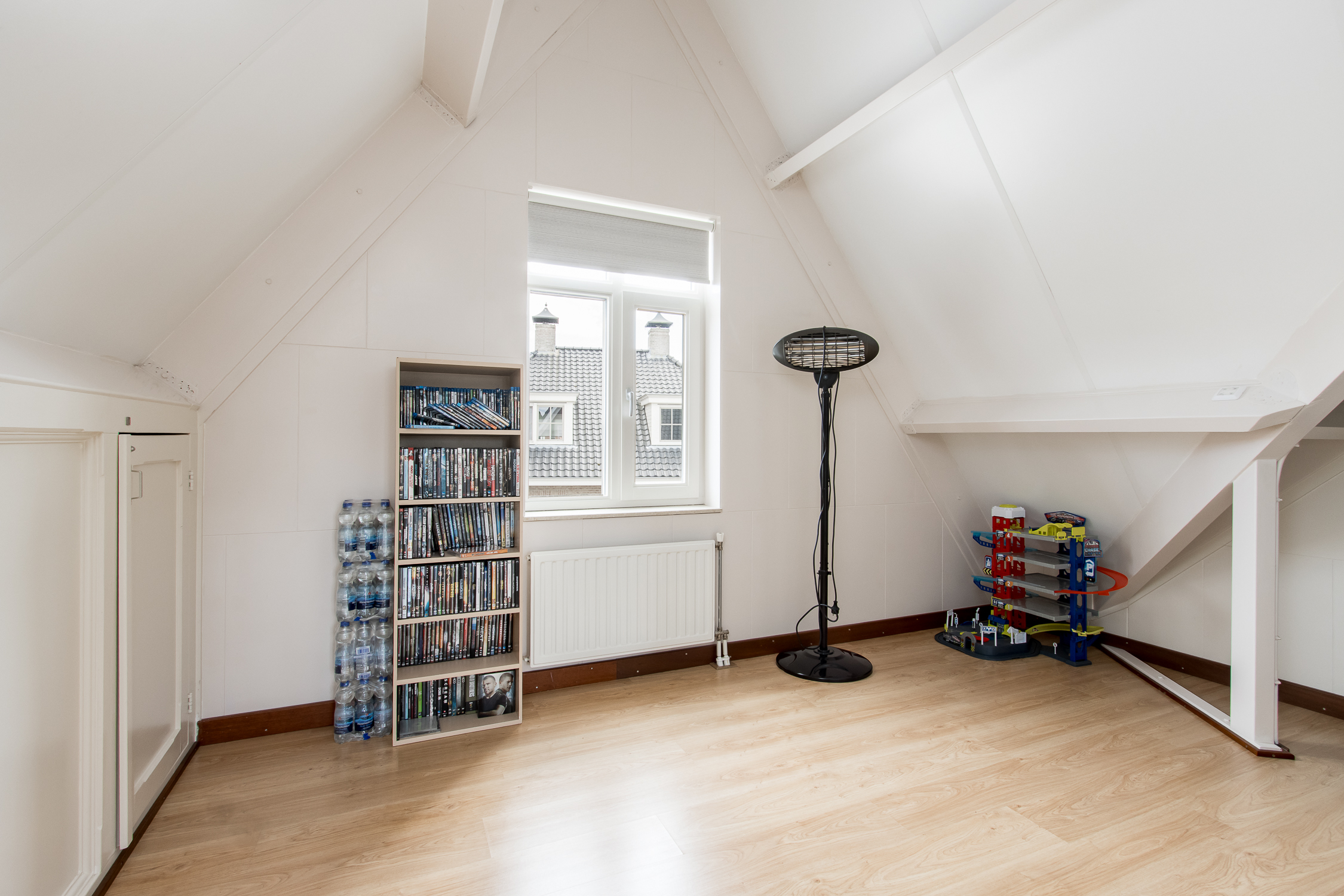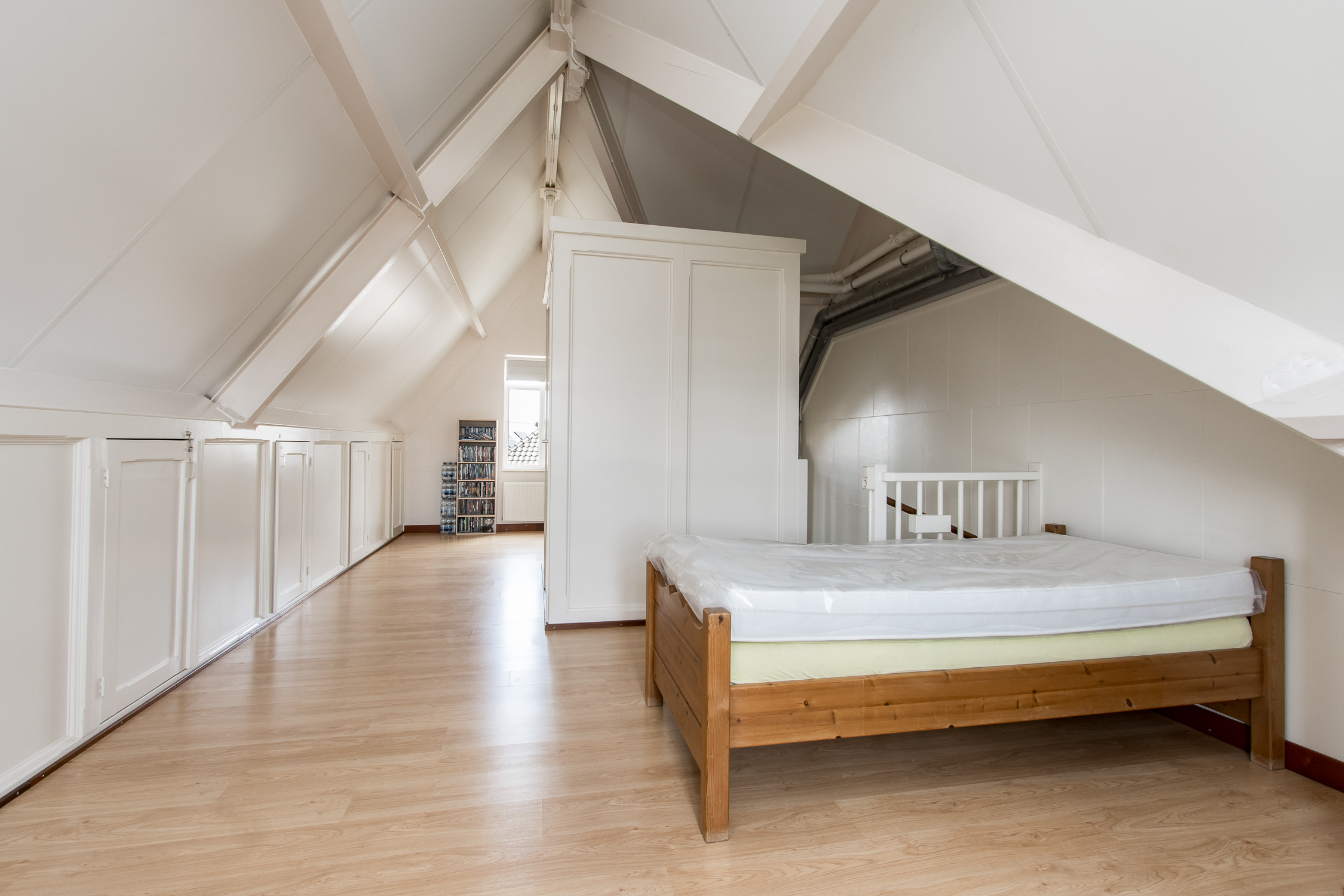 Tweede verdieping: een vaste trap geeft toegang tot de royale open zolder waar zich de vierde slaapkamer bevindt. De ruimte is voorzien van bergschotten en een aparte berging voor de CV installatie.