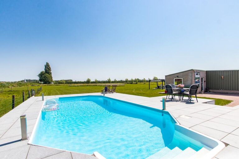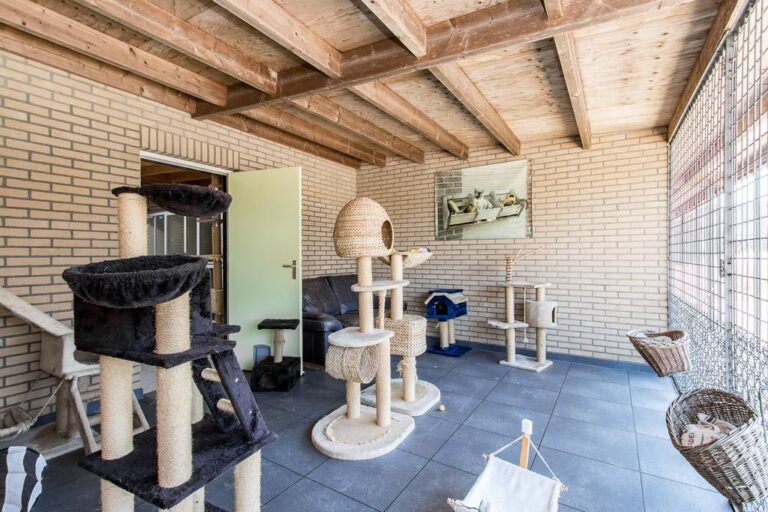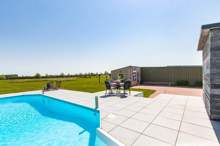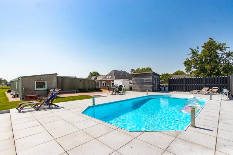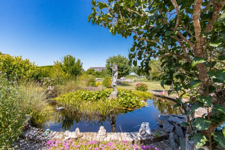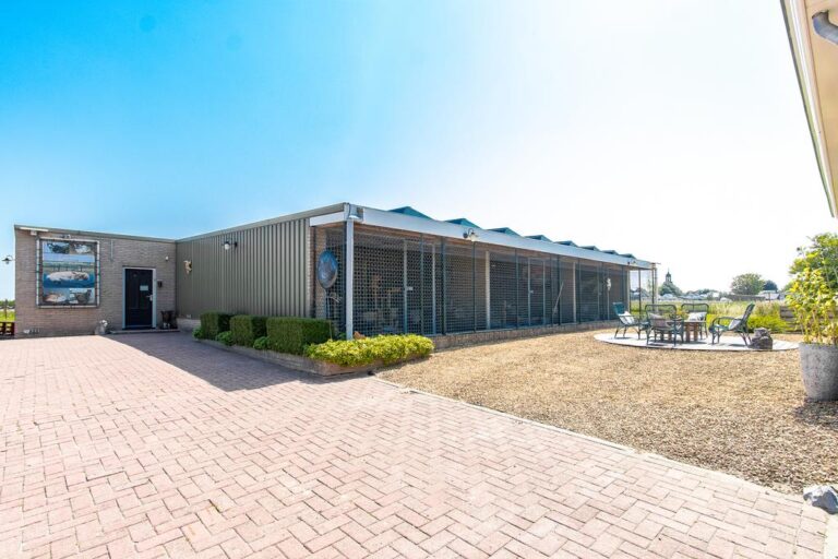 Buiten wacht er een fraai aangelegde tuin met aan de achterzijde een weids uitzicht over de landerijen. Rondom de woning zijn er diverse zitjes en terrassen gecreëerd om in alle rust en privacy heerlijk te genieten van de prachtige groene omgeving. In de verzorgde tuin is het aangenaam vertoeven aan het luxe zwembad met zonneterras en genieten op één van de zitjes die rondom de woning zijn gecreëerd. Verder is de tuin is aangelegd met sierbestrating, vijverpartij, fraaie beplantingen en is er een vrijstaande schuur/ garage (ca. 22 m²) met openslaande deuren. De voorzijde beschikt over een grote oprit met parkeergelegenheid voor meerdere auto’s. Het royale bijgebouw telt een gebruiksoppervlakte van ca. 200 m² is momenteel in gebruik als kattenpension en beschikt over o.a. een ontvangstruimte, verwarmd binnenverblijf en overdekt buitenverblijf.
