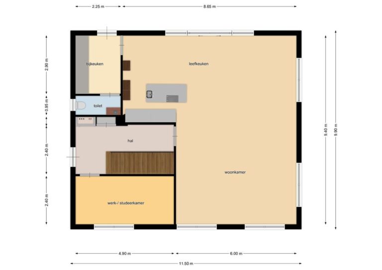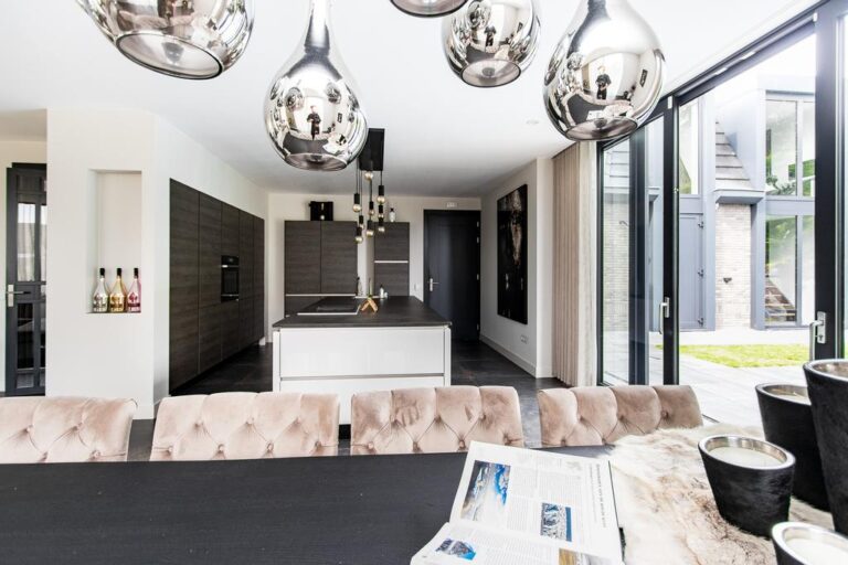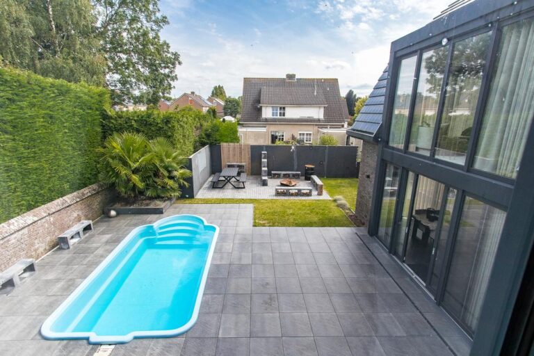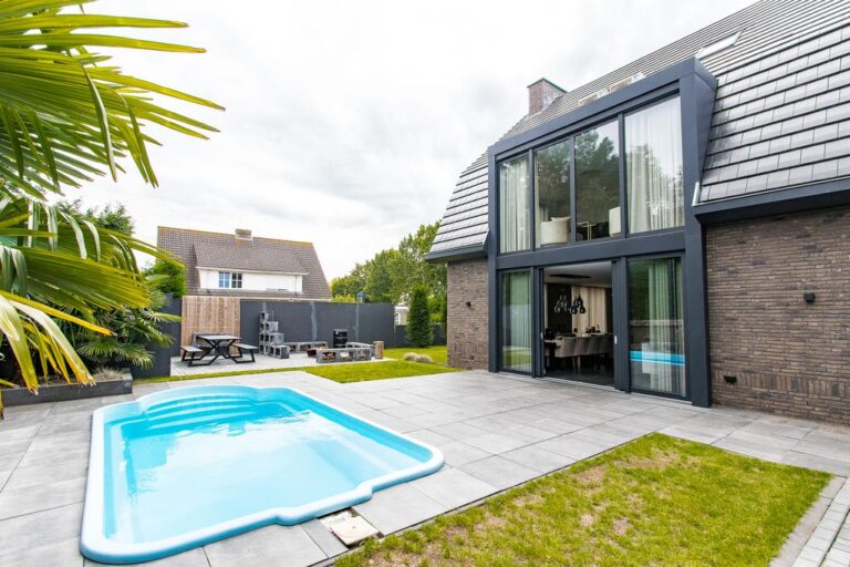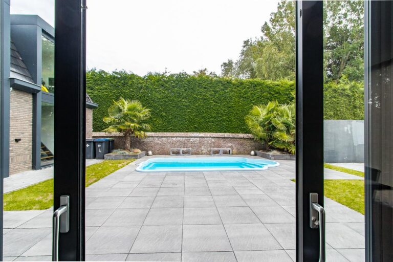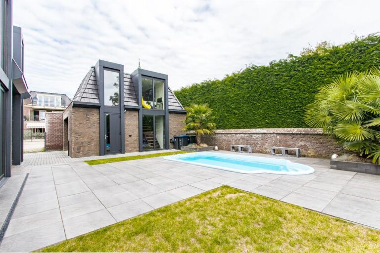 Begane grond: de entree bevindt zich aan de linkerzijde van de woning en geeft toegang tot de hal met meterkast, garderobe en trapopgang naar de eerste verdieping. Vanuit de hal is de werk-/ studeerkamer en de royale living met open keuken bereikbaar. De sfeervolle woonkamer staat in verbinding met de luxe open keuken voorzien van kook-/ spoeleiland, vaste kasten en diverse inbouwapparatuur zoals; Quooker, stoomoven, inductie kookplaat met afzuiging en koelkast. De schuifpui biedt toegang tot het terras bij het zwembad. Vanuit de keuken bereikt u aan de achterzijde de bijkeuken met toegang naar het toilet en loopdeur naar de achtertuin.