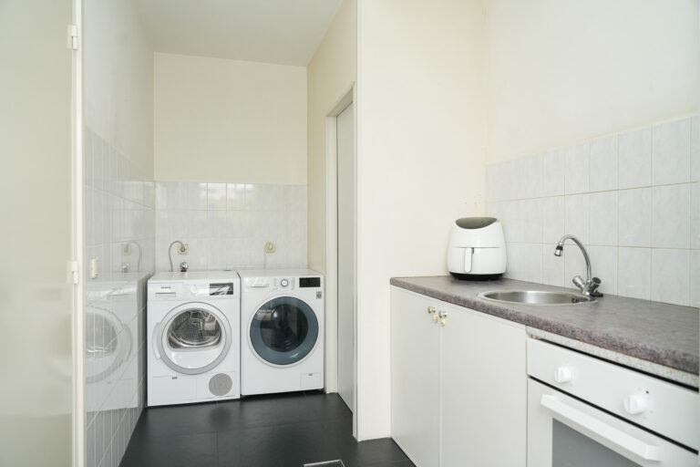 De halfopen keuken is een plaatje: een praktische opstelling, een kookeiland en een gezellige eetplek nodigen uit om hier urenlang te kokkerellen en te tafelen, terwijl u uitzicht heeft op de fraai aangelegde achtertuin. Aangrenzend vindt u de bijkeuken met wasmachineaansluitingen, extra bergruimte en een spoelbak optioneel eenvoudig om te bouwen tot een extra badkamer. De werkkamer aan de voorzijde is perfect voor thuiswerken, maar kan ook als extra slaapkamer worden gebruikt.