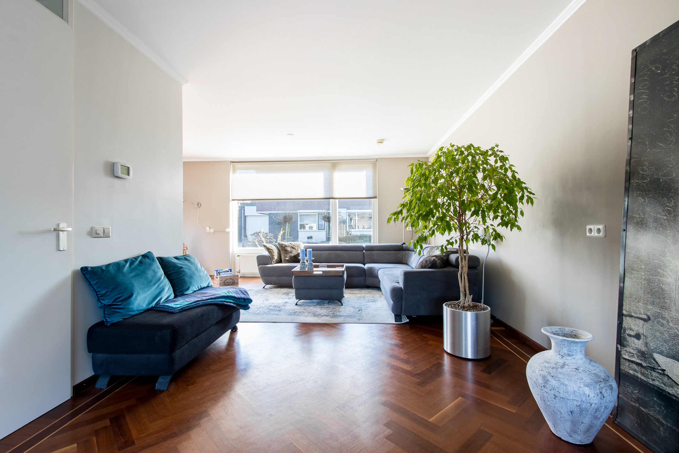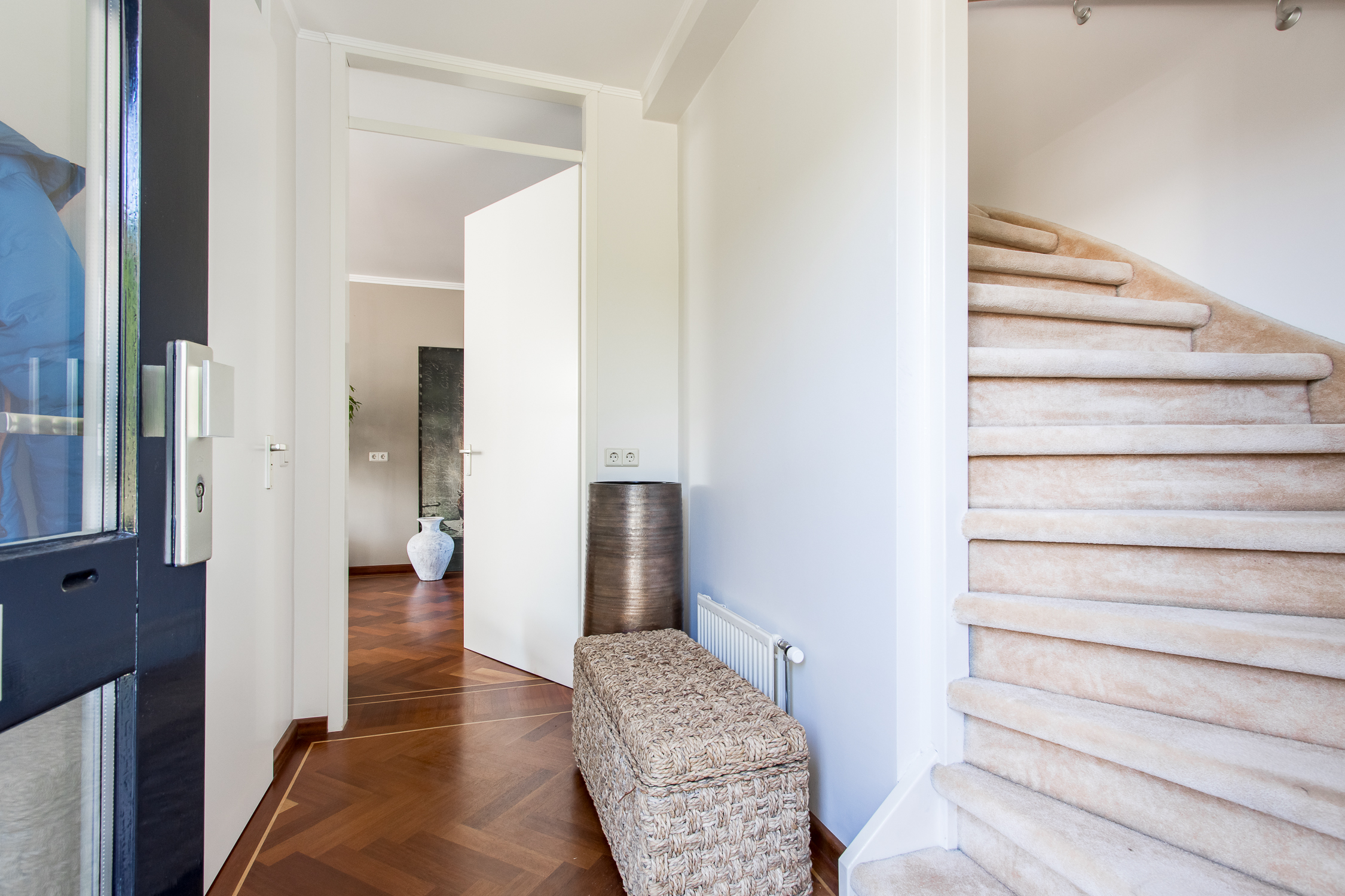 Indeling woning: via de entree kom je in een ruime hal met garderobe, meterkast, toiletruimte en een trapopgang naar de eerste verdieping. Vanuit de hal stap je de lichte en royale woonkamer binnen. De woonkamer bevindt zich aan de voorzijde, terwijl de moderne U-vormige keuken met diverse inbouwapparatuur aan de achterzijde is gesitueerd. Een loopdeur biedt directe toegang tot het terras en de achtertuin.