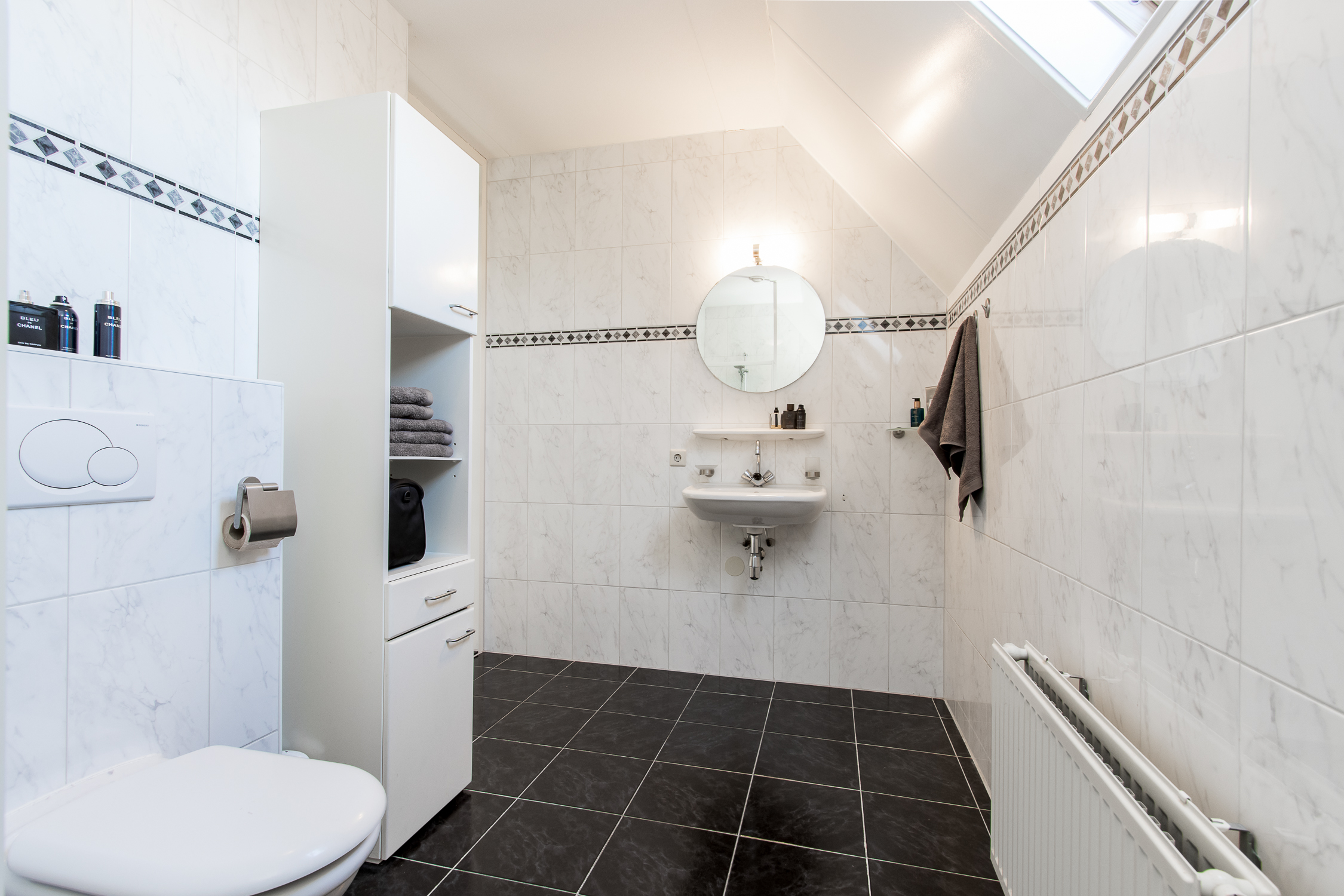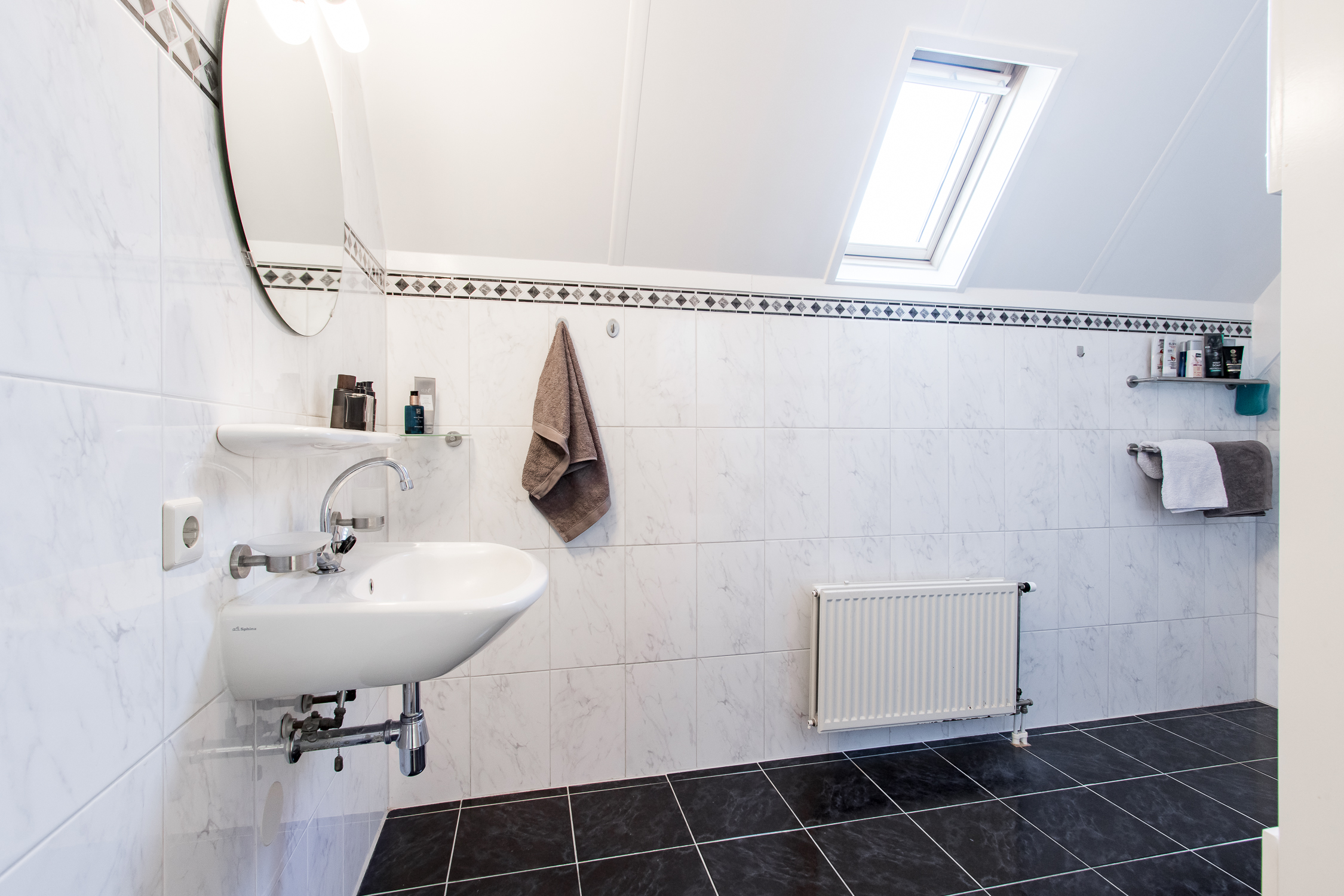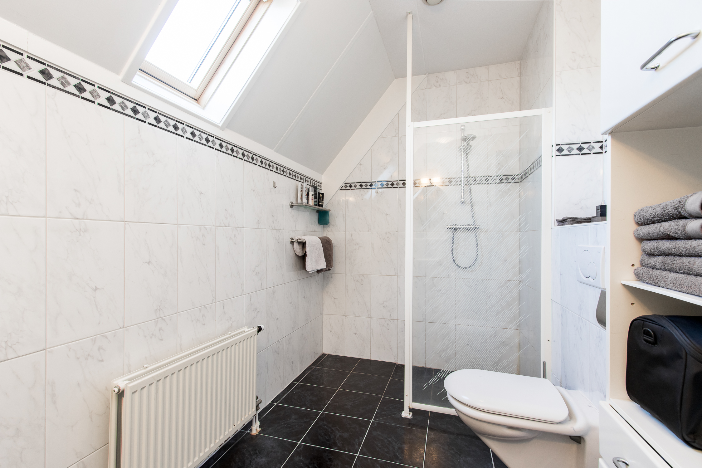 Eerste verdieping: op de eerste verdieping leidt de overloop naar twee ruime slaapkamers en een nette badkamer, voorzien van een inloopdouche, wandcloset en wastafel.