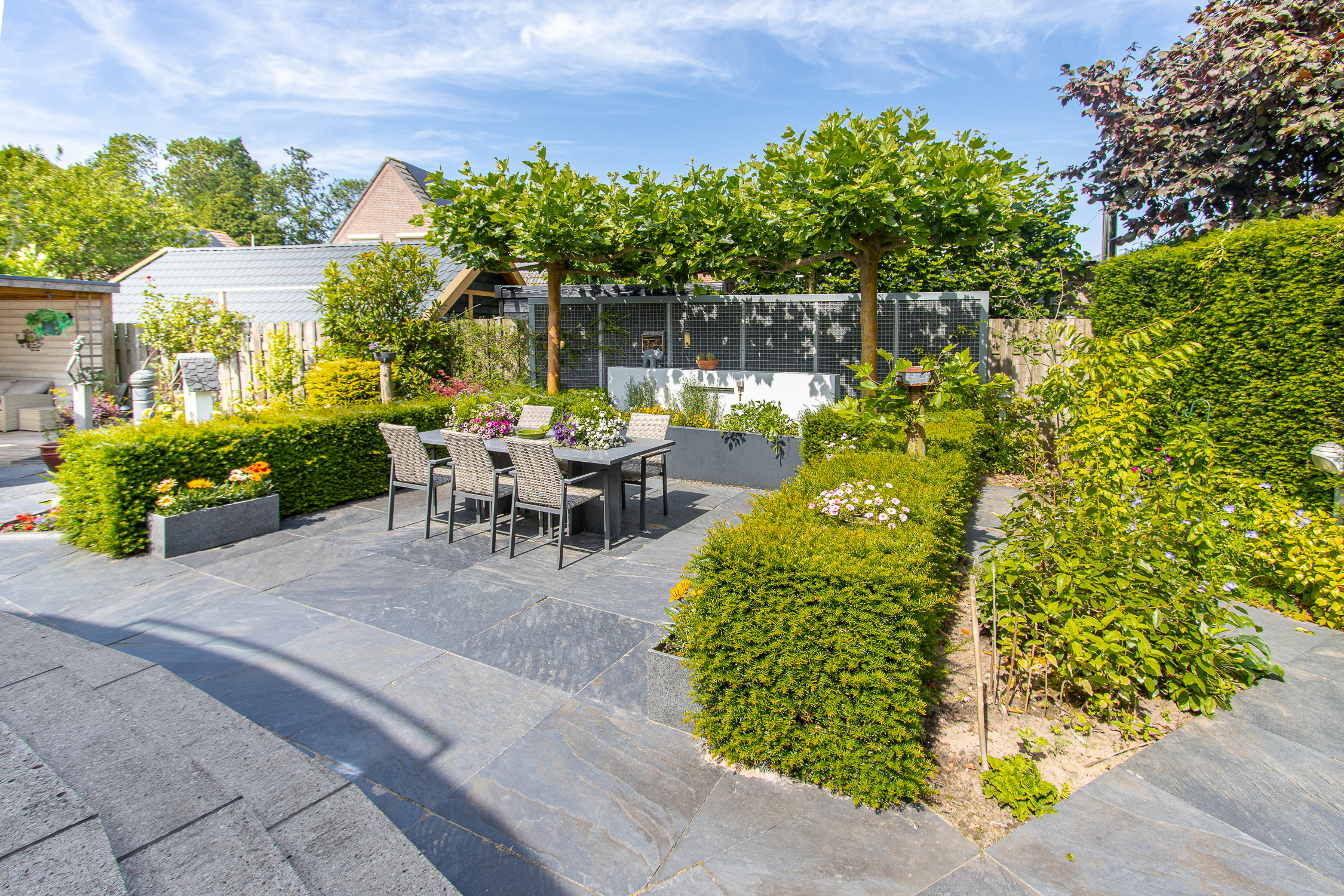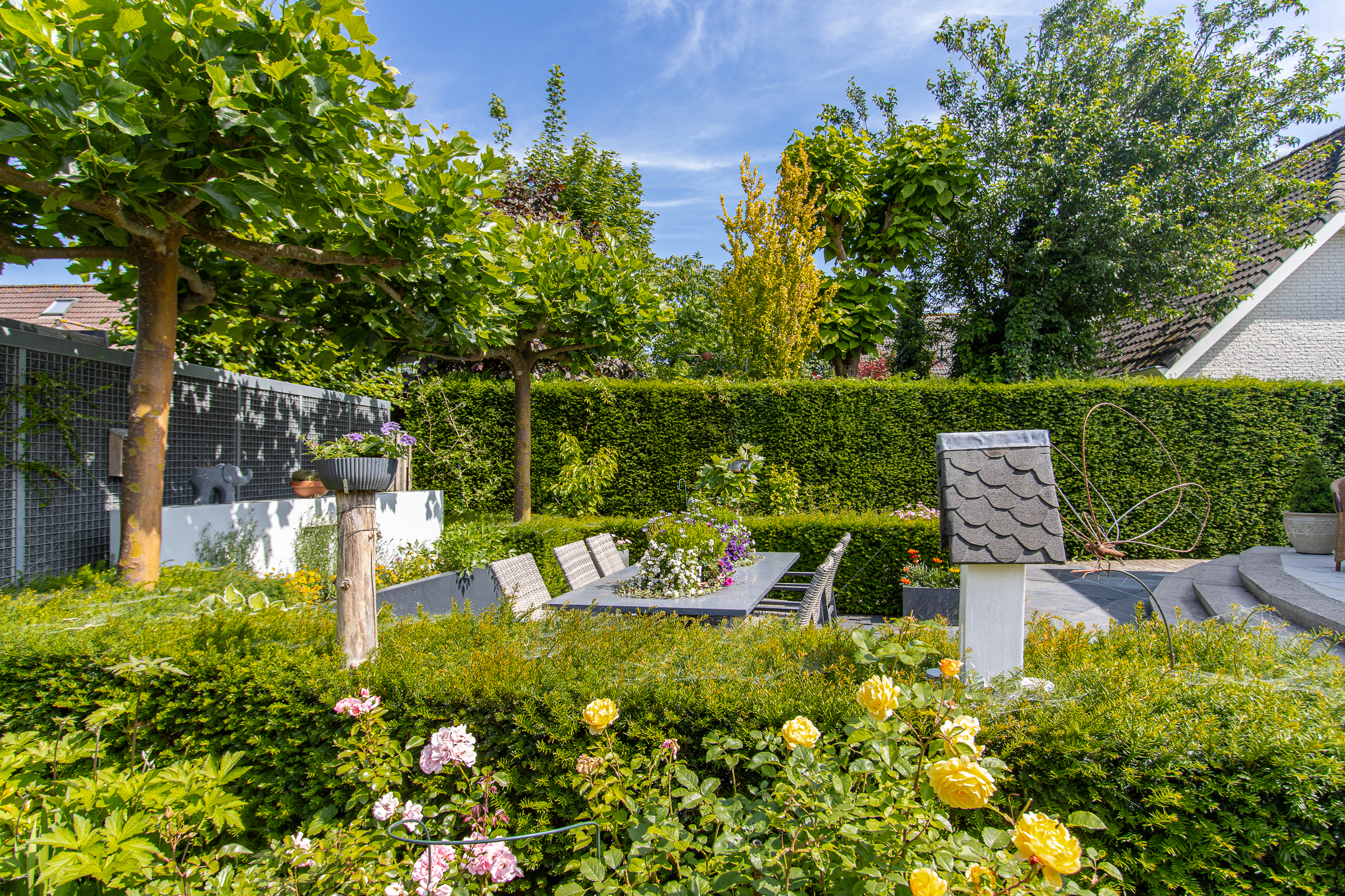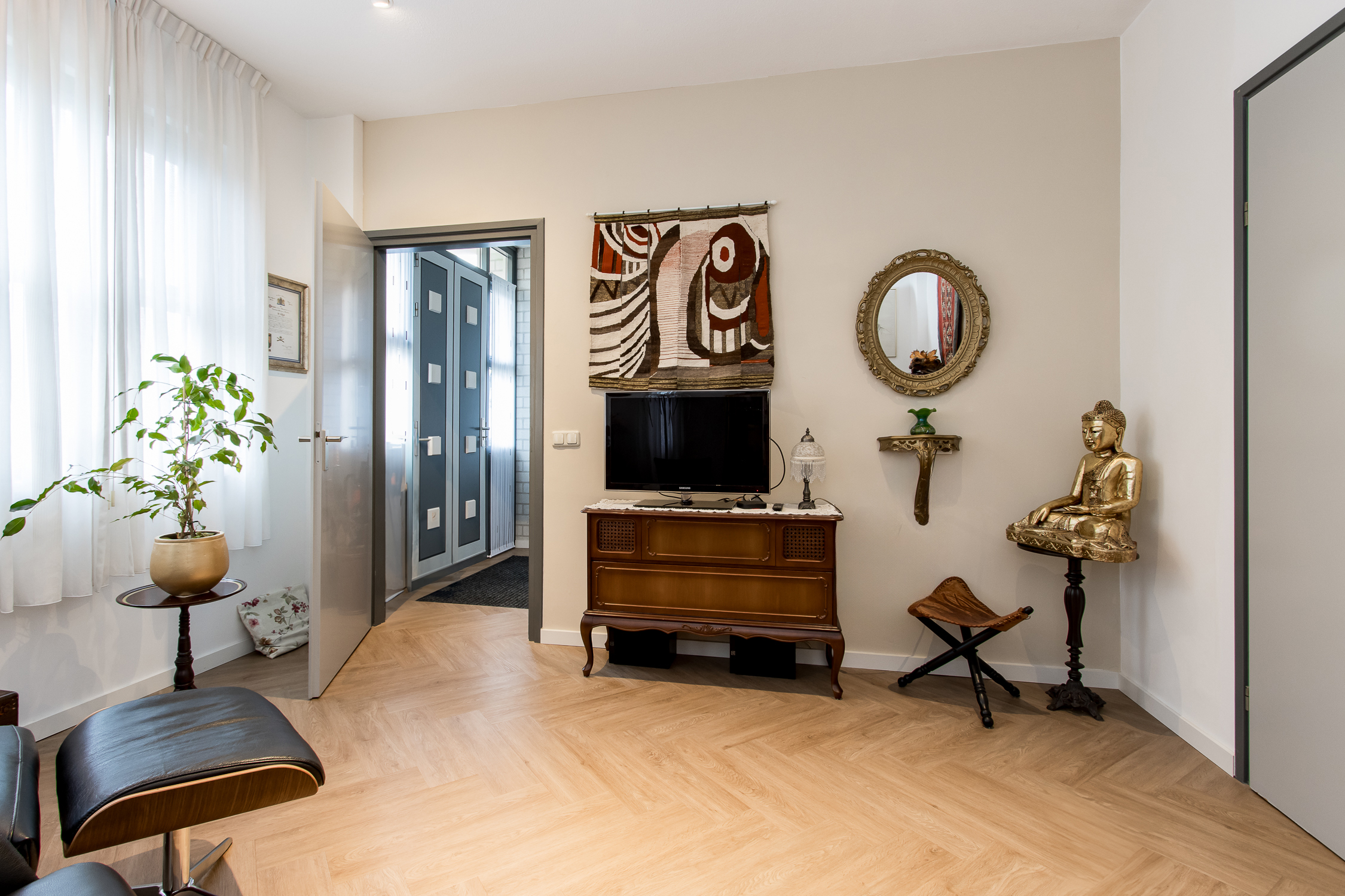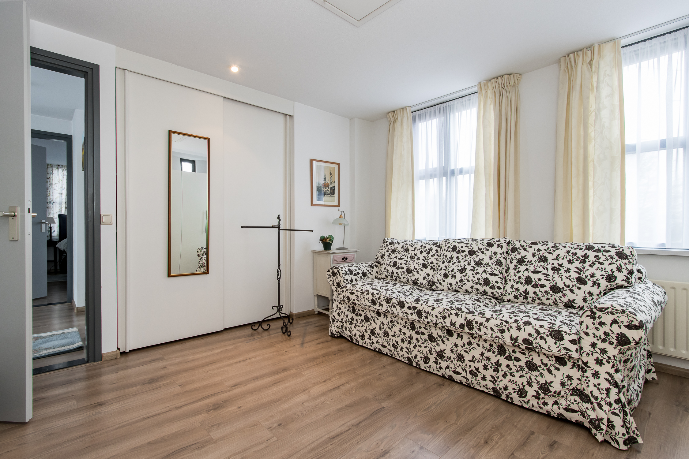 De lichte woonkamer is gelegen aan de achterzijde en biedt een prachtig uitzicht op de fraai aangelegde achtertuin. De woonkamer beschikt over een airco tevens verwarmingsunit van 2023. In voor-en najaar kan hiermee de kamer verwarmd worden maar ook in de winter als bijverwarming voldoet deze unit. Uiteraard kan de kamer ook goed gekoeld worden. Vanuit de woonkamer komt u via de bijkeuken met een tweede elektrische kookplaat en vaatwasser in de compleet ingerichte woonkeuken met vrij uitzicht. De keuken in hoekopstelling is uitgerust met diverse inbouwapparatuur zoals een Bora inductiekookplaat met geïntegreerde afzuiging, (stoom)oven, koelkast, vaatwasser en Quooker.