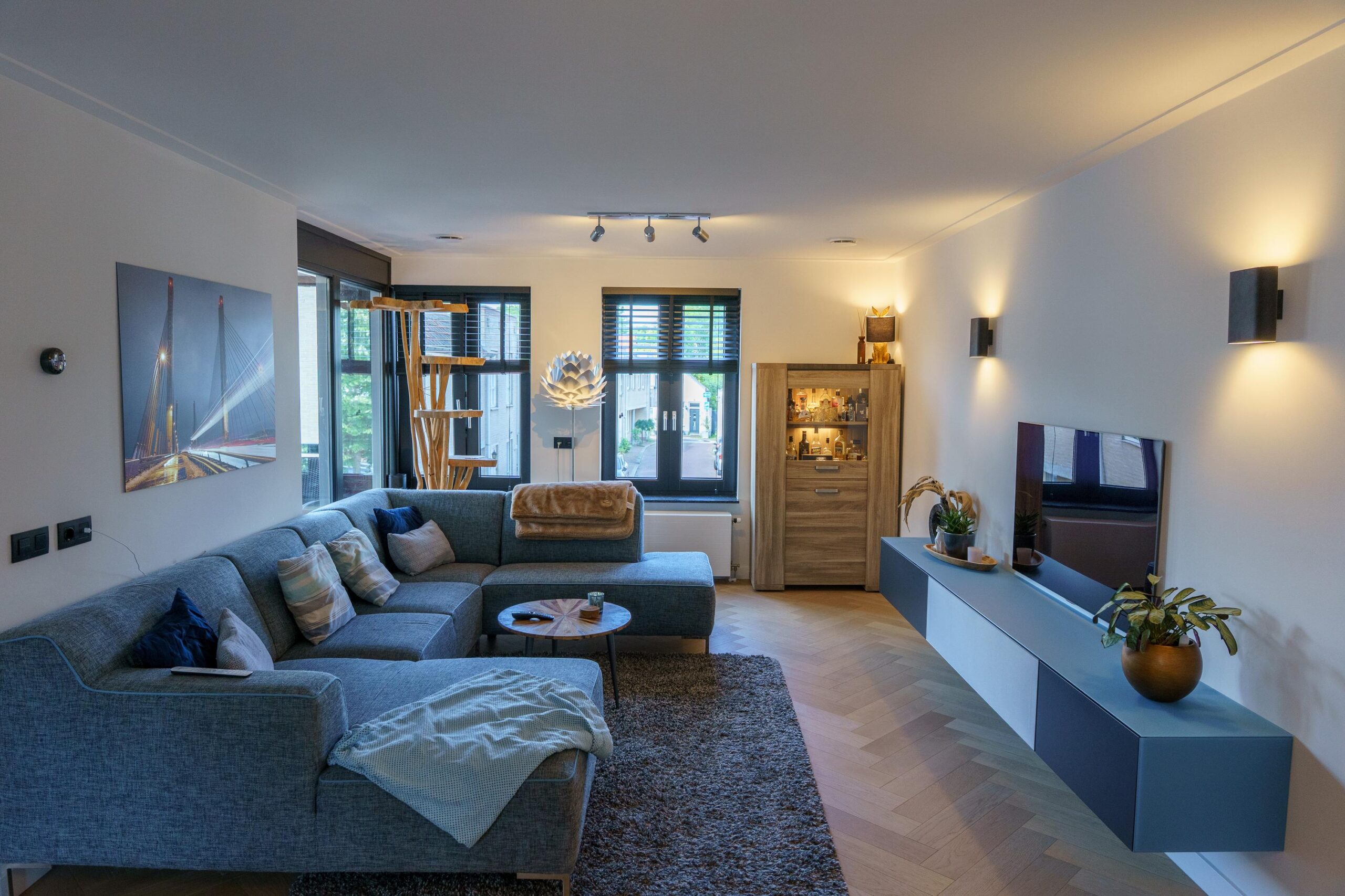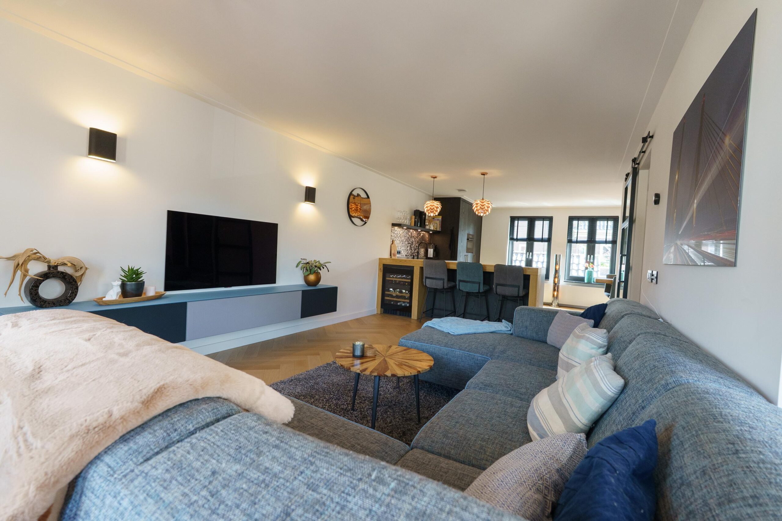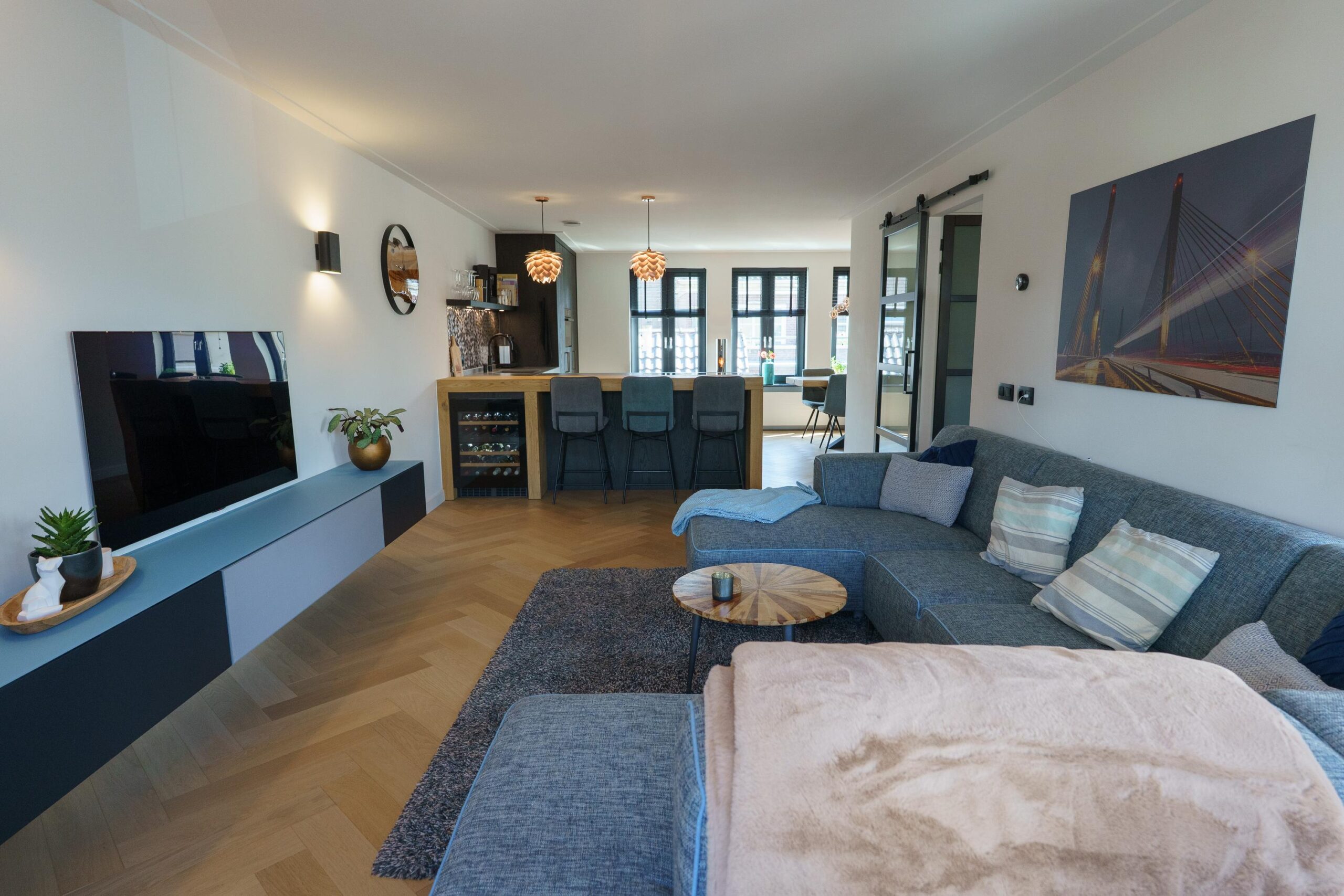 Drie jaar geleden is de woning tot in de puntjes gerenoveerd. Daarbij is gekozen voor luxe materialen, een verfijnde afwerking en moderne gemakken. De ruime woonkamer op de eerste verdieping is licht en uitnodigend, met direct daarnaast een sfeervol balkon op het zuidwesten, bereikbaar via de hal – een perfecte plek om te genieten van de middagzon. De vloer is bekleed met een massief eiken vloer in visgraatmotief. De luxe eikenhouten hoekkeuken is volledig uitgerust met hoogwaardige inbouwapparatuur en vormt een stijlvol hart van het huis.