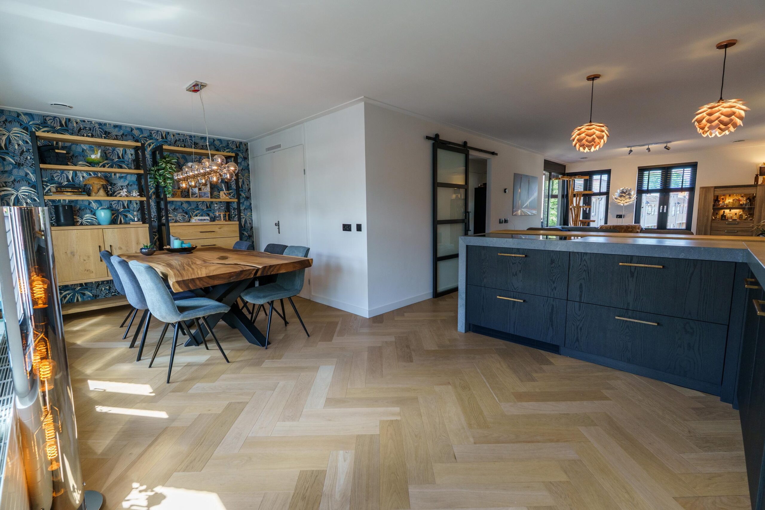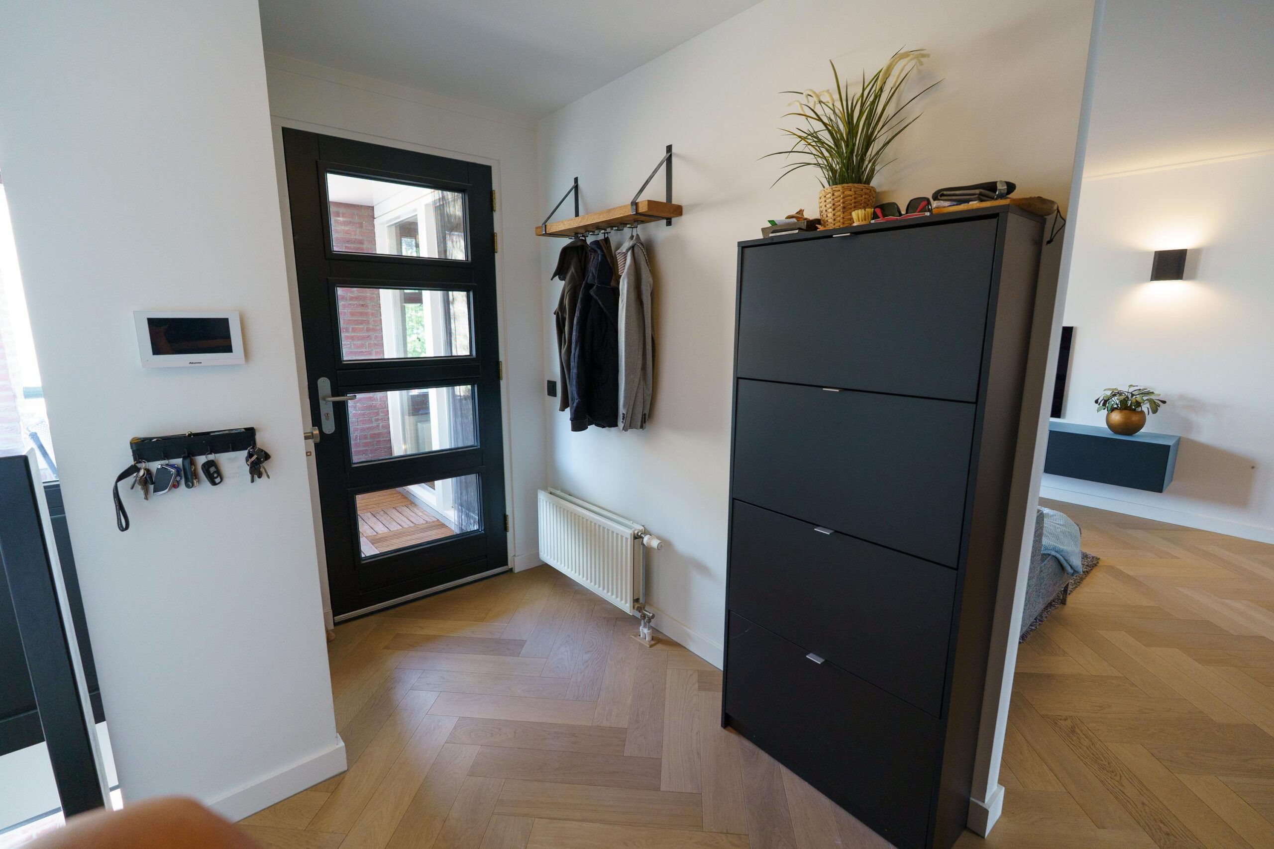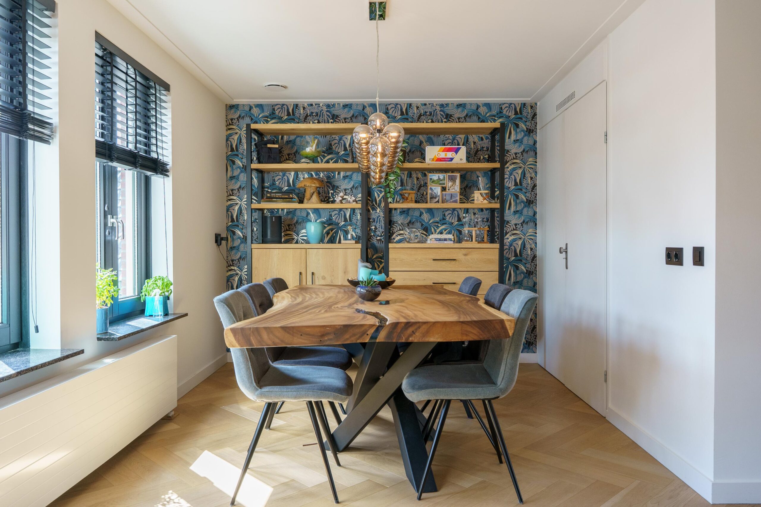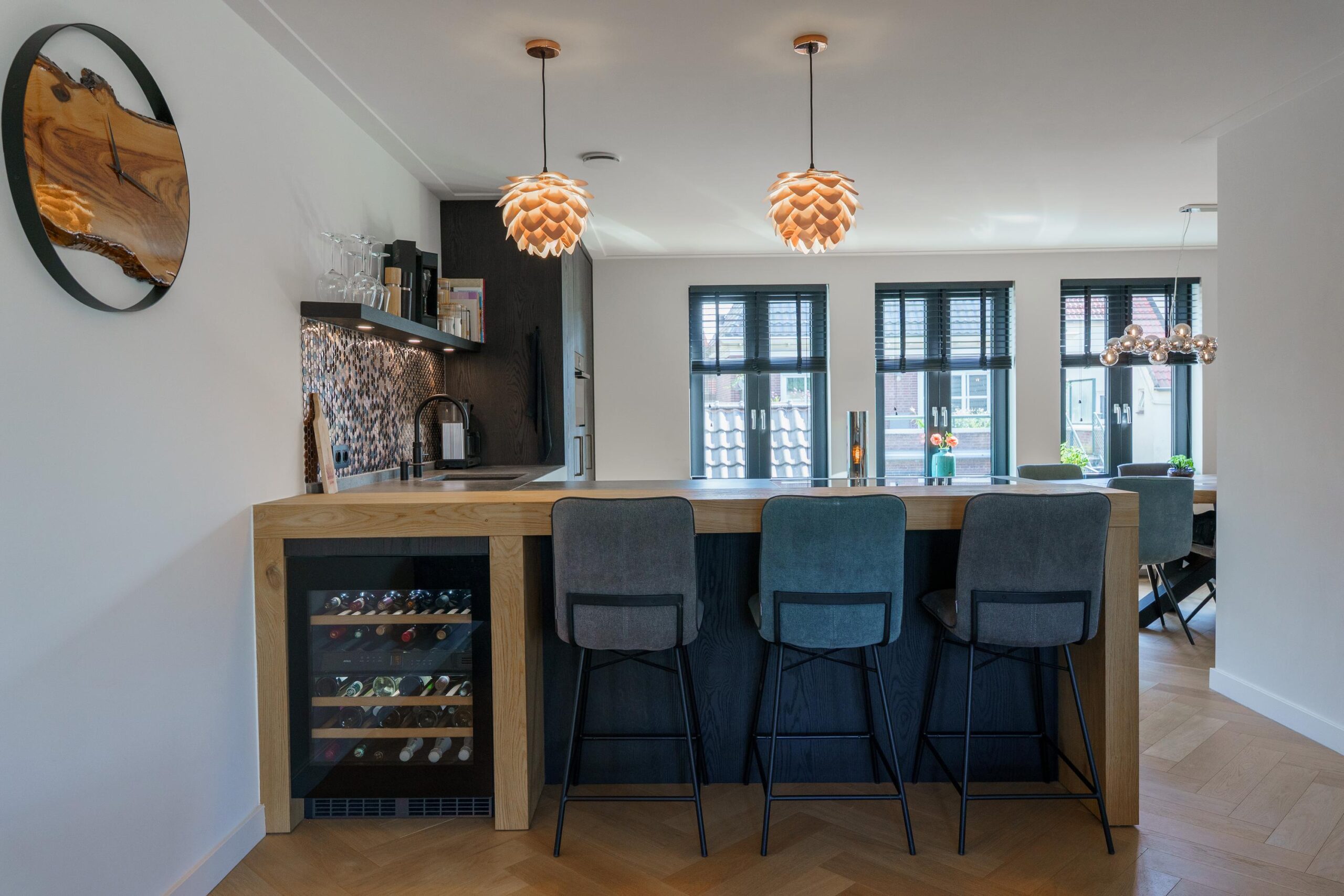 Drie jaar geleden is de woning tot in de puntjes gerenoveerd. Daarbij is gekozen voor luxe materialen, een verfijnde afwerking en moderne gemakken. De ruime woonkamer op de eerste verdieping is licht en uitnodigend, met direct daarnaast een sfeervol balkon op het zuidwesten, bereikbaar via de hal – een perfecte plek om te genieten van de middagzon. De vloer is bekleed met een massief eiken vloer in visgraatmotief. De luxe eikenhouten hoekkeuken is volledig uitgerust met hoogwaardige inbouwapparatuur en vormt een stijlvol hart van het huis.