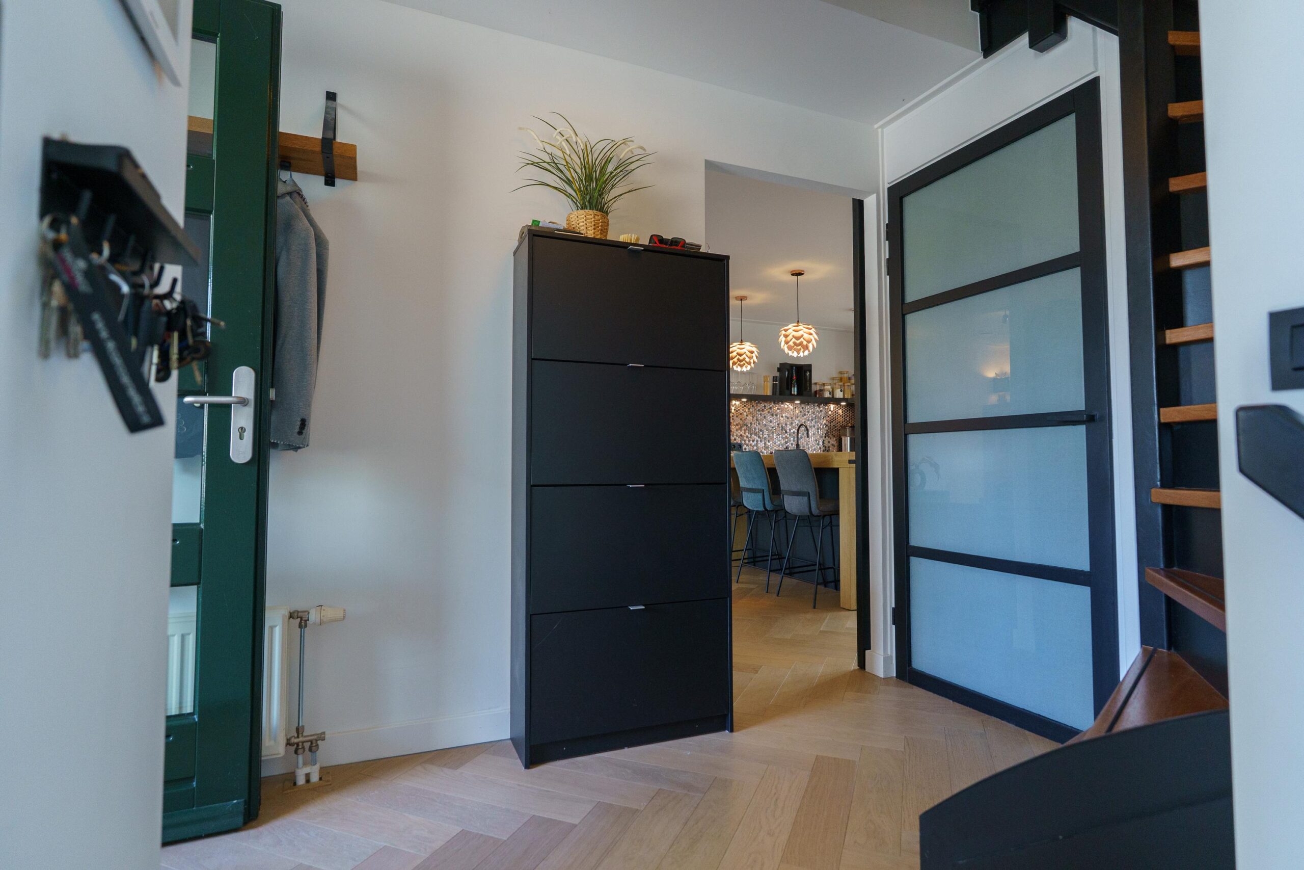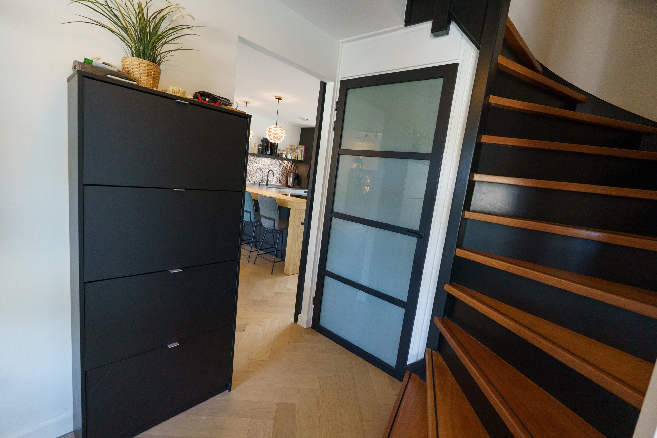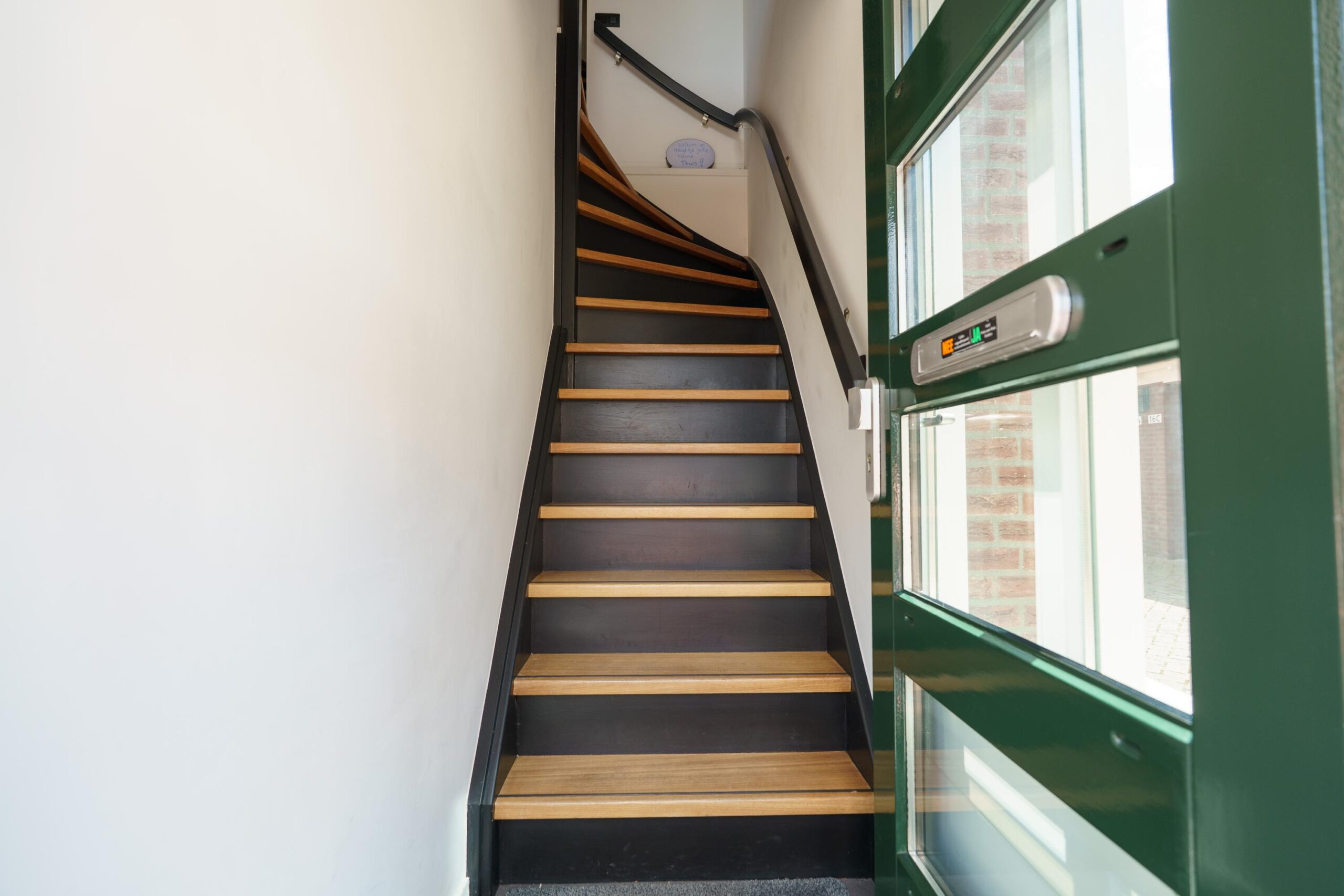 Via de eigen entree op de begane grond bereik je de trapopgang naar de eerste verdieping.
