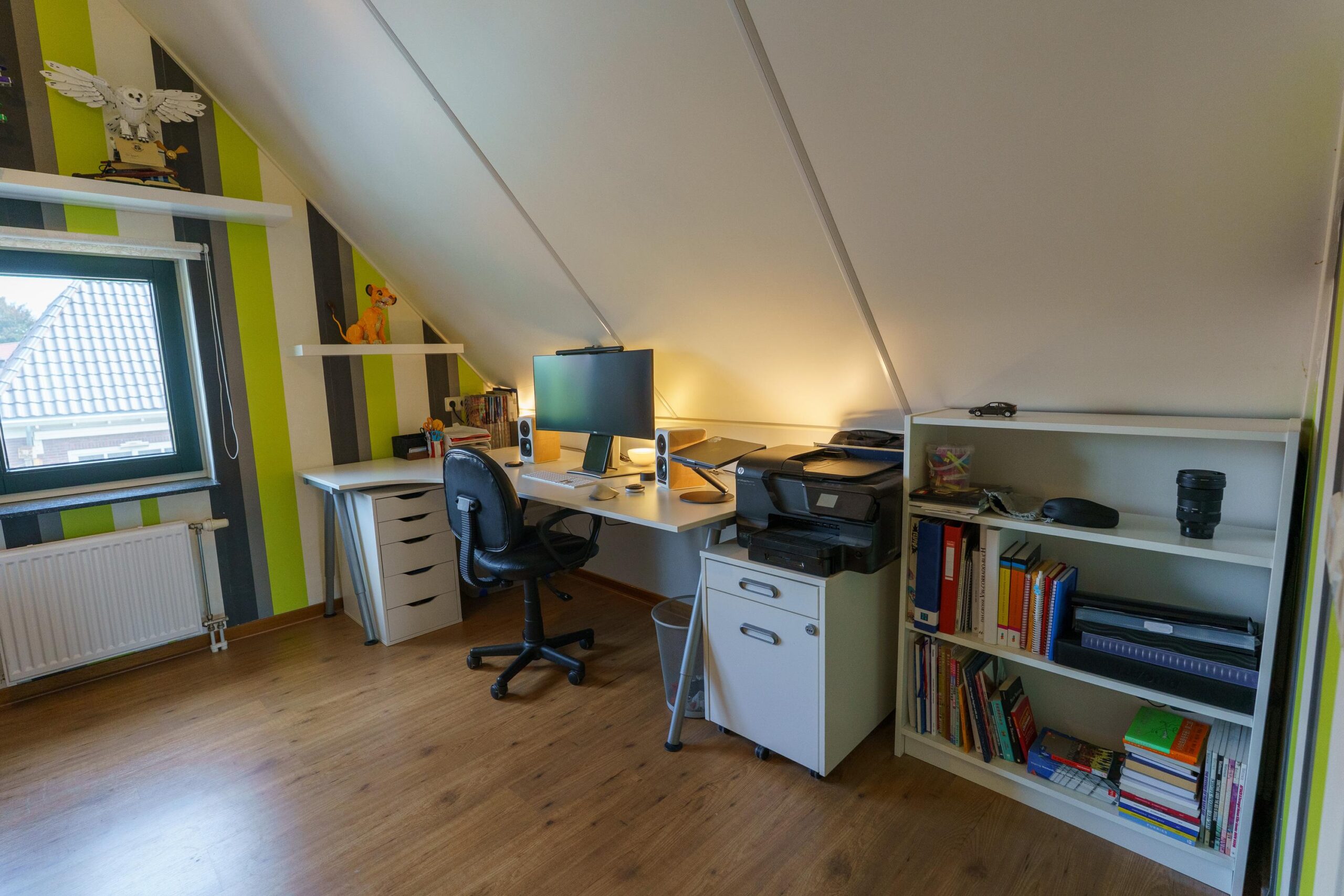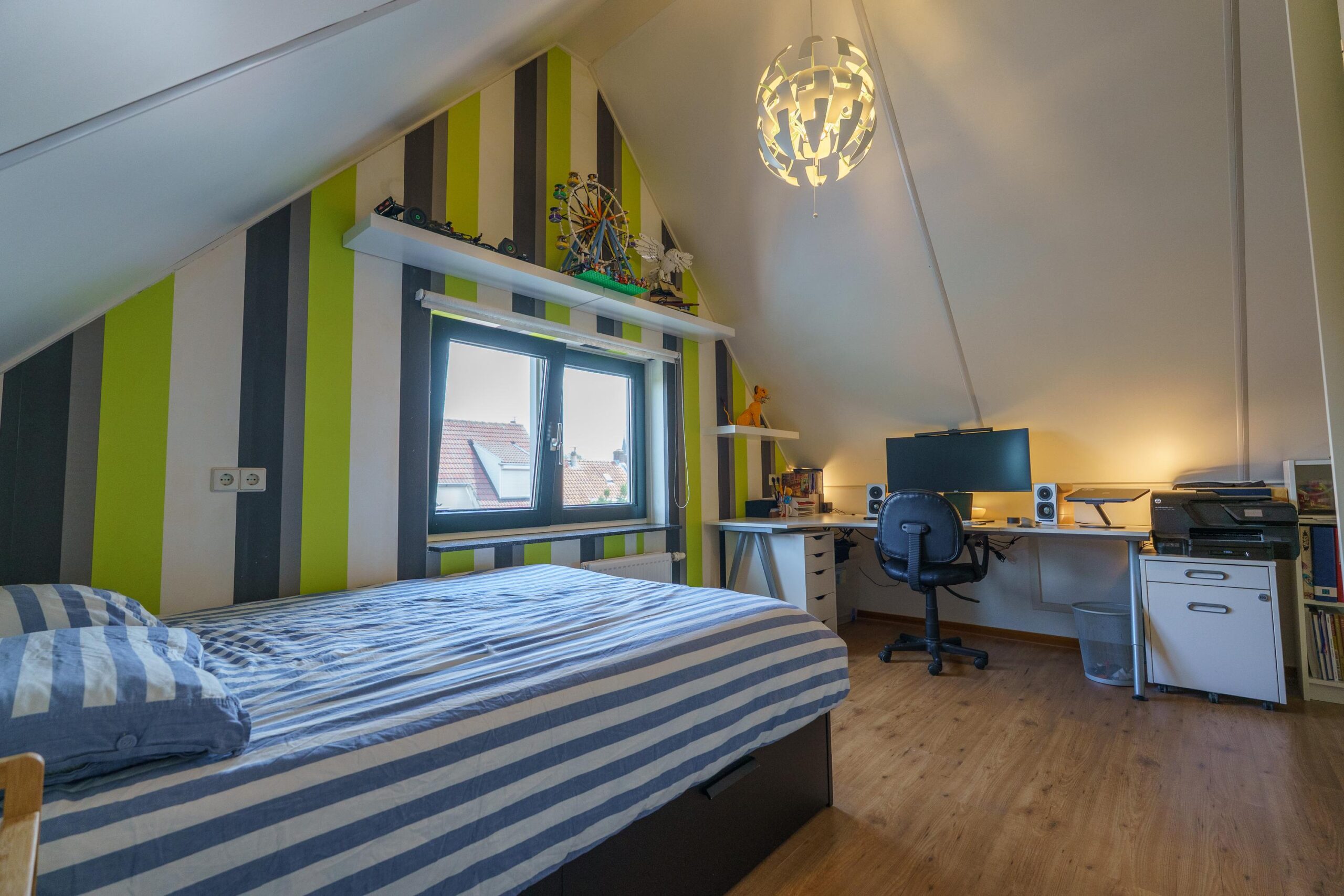 Tweede verdieping: een vaste trap leidt naar de tweede verdieping, waar je via de overloop toegang hebt tot twee volwaardige slaapkamers. Eén van de kamers beschikt over een vaste kast, de andere over een stijlvolle, op maat gemaakte kastenwand. De moderne badkamer is dankzij een royale dakkapel uitzonderlijk licht en ruim. Hier vind je een ligbad met jets, inloopdouche, wastafelmeubel, designradiator, een urinoir en speakers in het plafond.