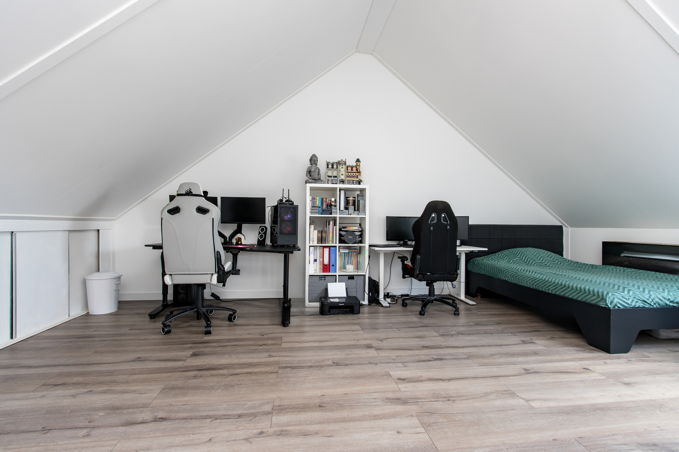 Tweede verdieping: via een vaste trap is de open zolder met witgoedaansluiting, WTW-unit en C.V.-installatie bereikbaar. Er is voldoende ruimte voor het creëren van een extra (slaap)kamer.