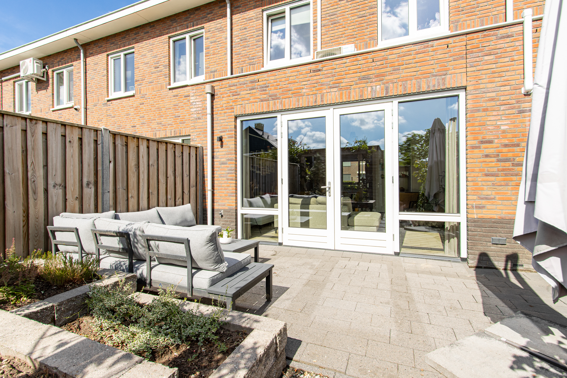 • een lichte, tuingerichte woonkamer met openslaande deuren naar buiten;