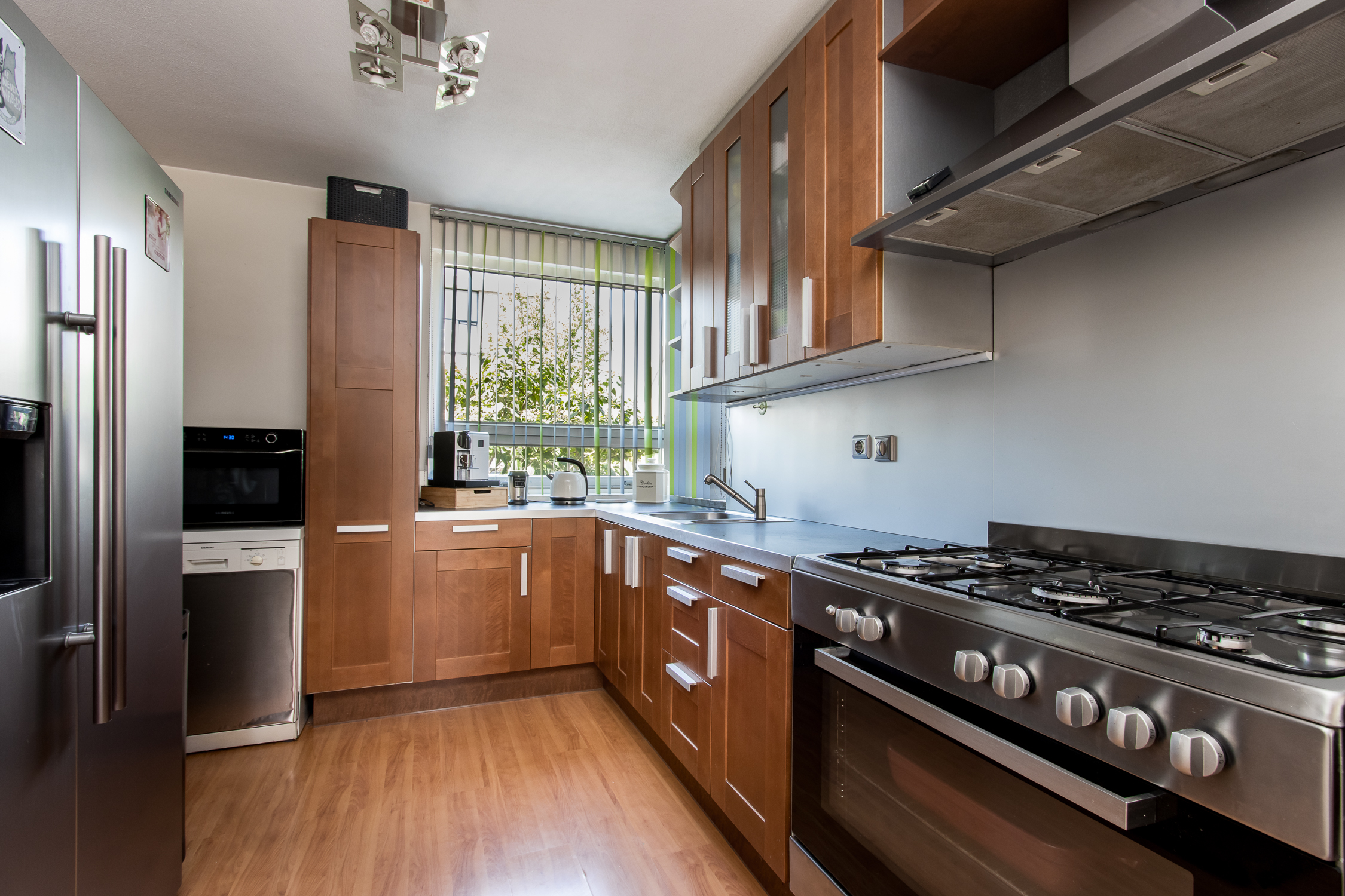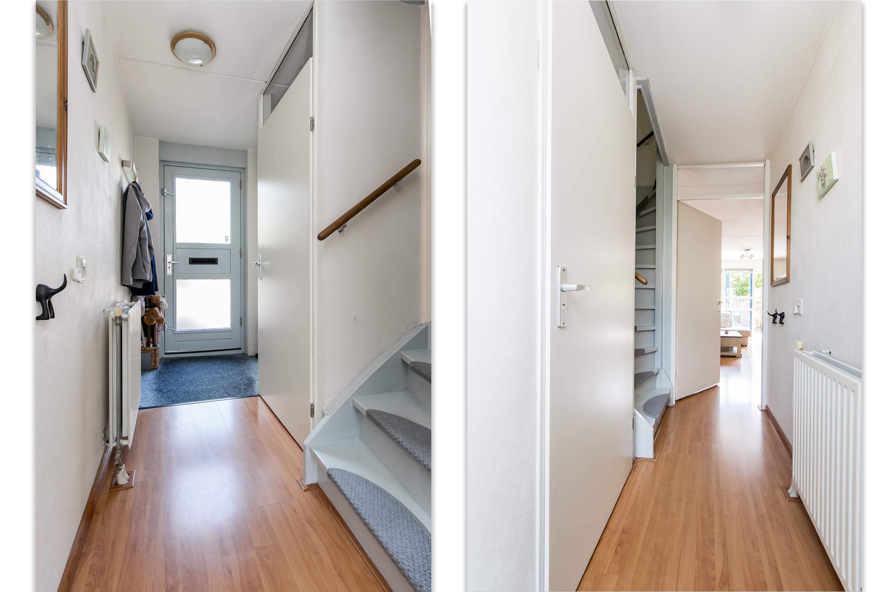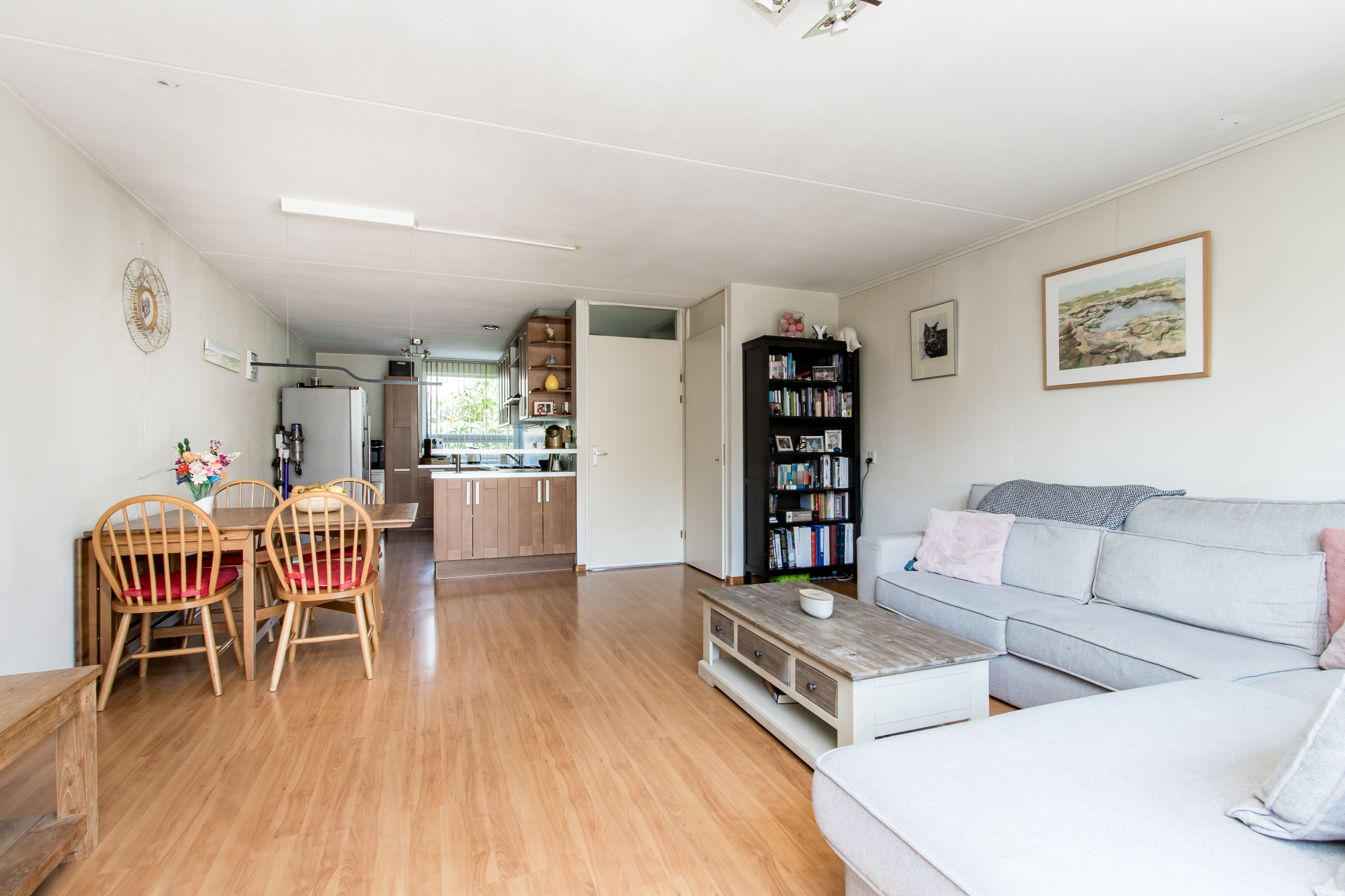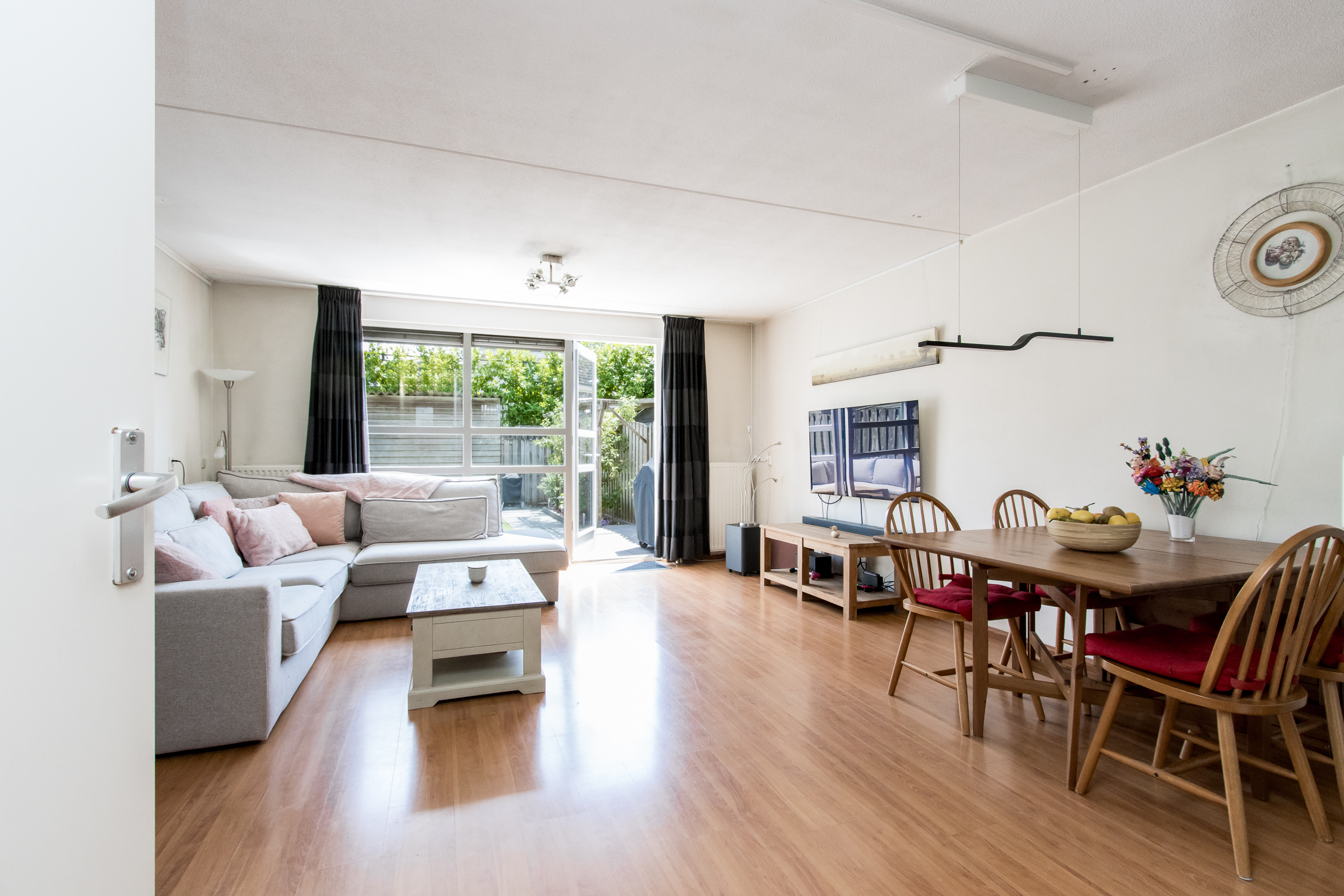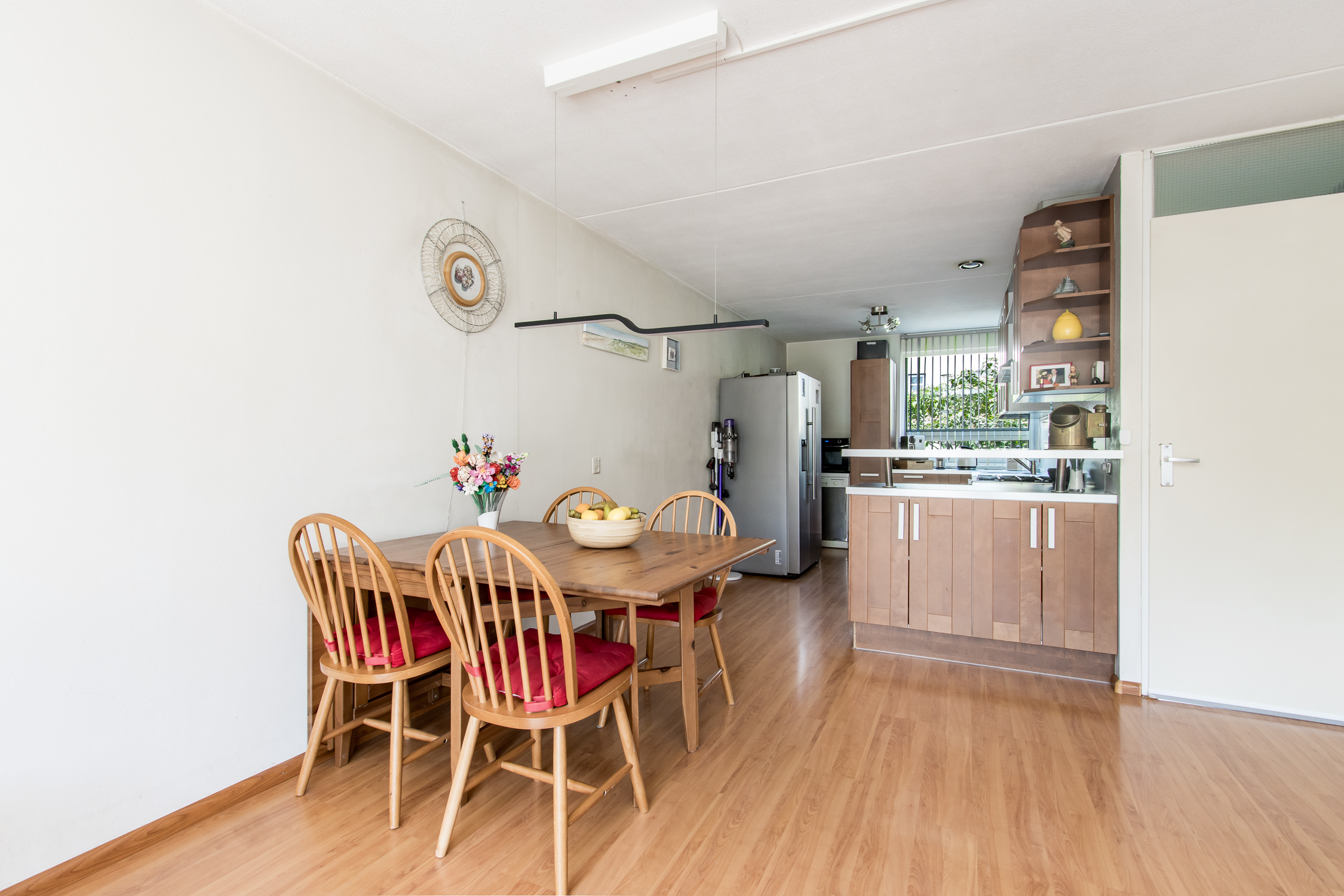 Indeling: aan de voorzijde bevindt zich de entree met meterkast, toiletruimte en trapopgang naar de eerste verdieping. Via de hal bereikt stap je de tuingerichte woonkamer binnen met aan de voorzijde is de open keuken voorzien van diverse inbouwapparatuur zoals; een 4-pits gasfornuis met wokbrander, afzuigkap, oven, koelkast met vriezer en vaatwasser.
