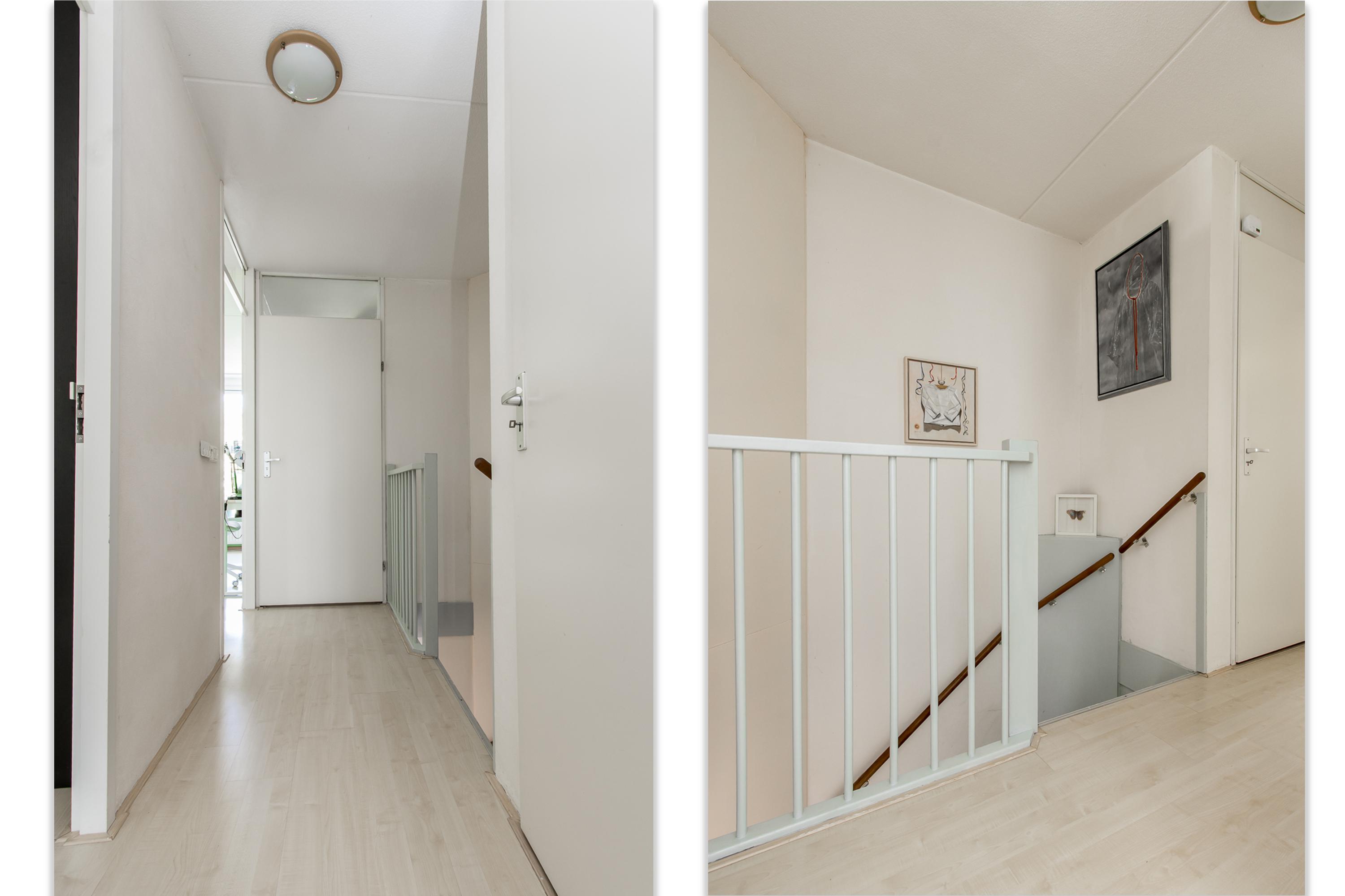 Eerste verdieping: de overloop geeft toegang tot 3 slaapkamers, badkamer v.v. douche, wastafel en toilet en vaste kast met witgoedaansluiting en C.V. installatie.