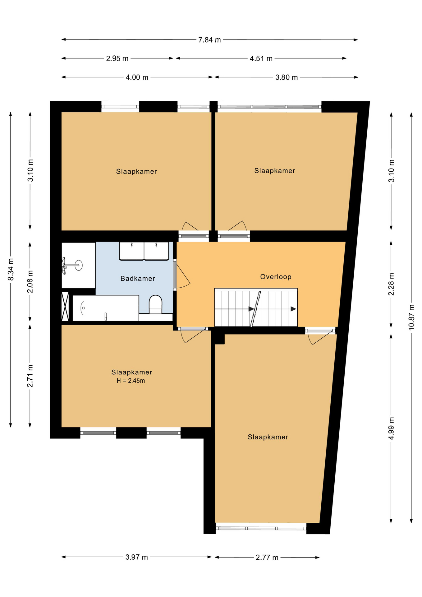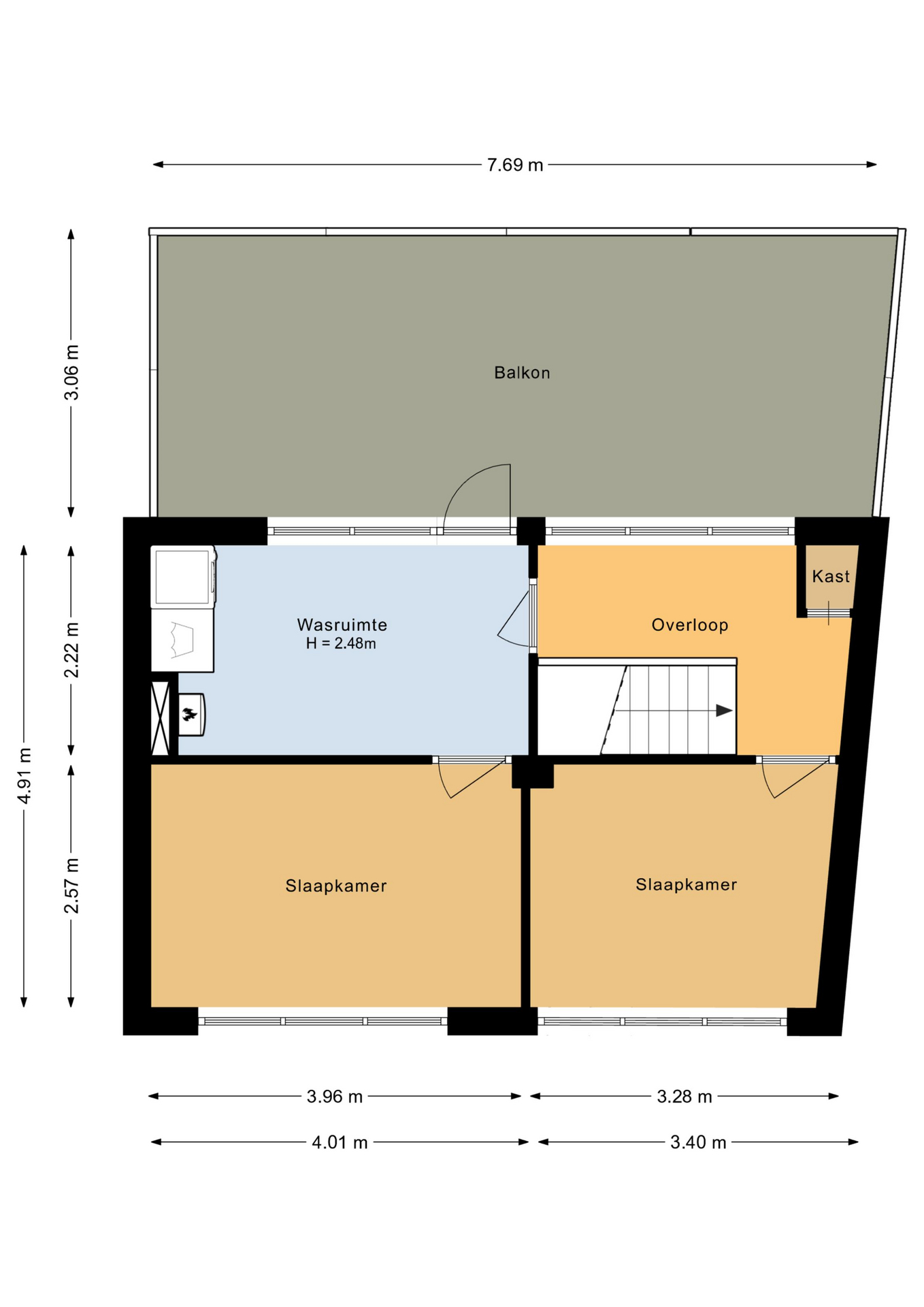 Tweede verdieping: de tweede verdieping biedt nog eens twee slaapkamers, een praktische wasruimte met c.v.-installatie en witgoedaansluitingen, en een loopdeur naar het royale dakterras van 24 m².