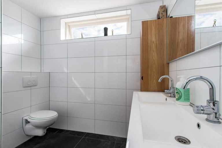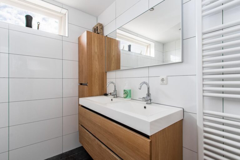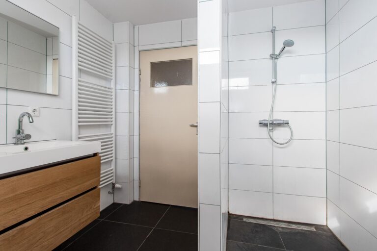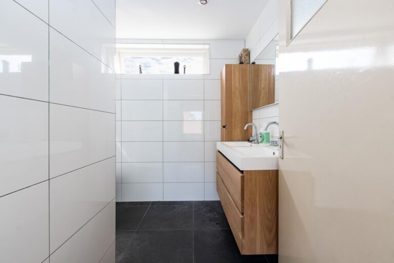 Eerste verdieping: de overloop geeft toegang tot 3 ruime slaapkamers en nette badkamer met dubbele wastafel, inloopdouche en wandcloset.