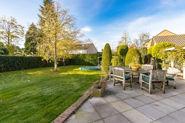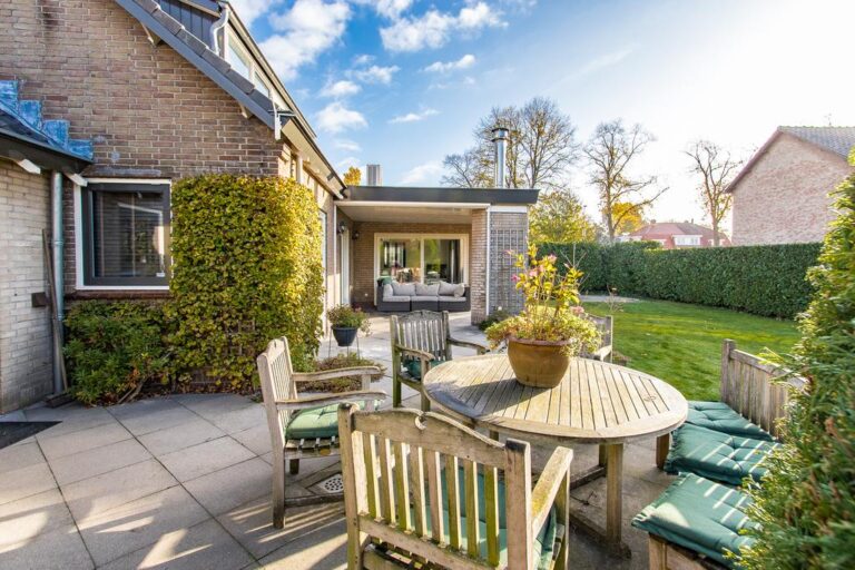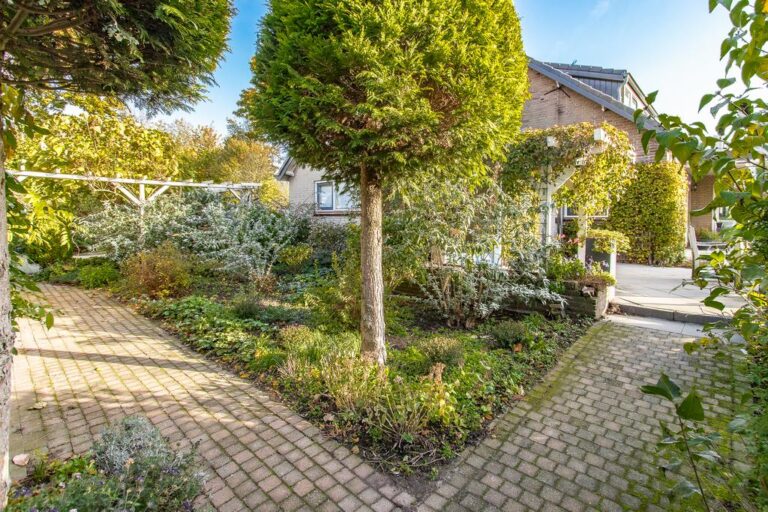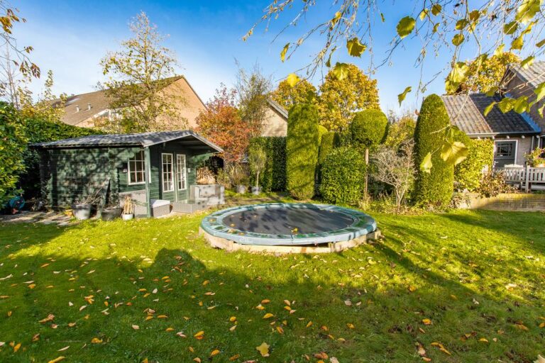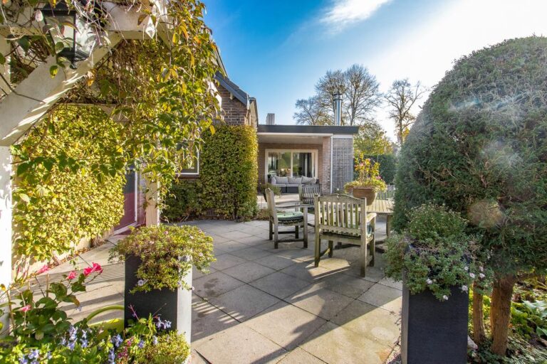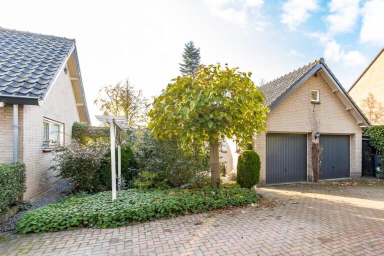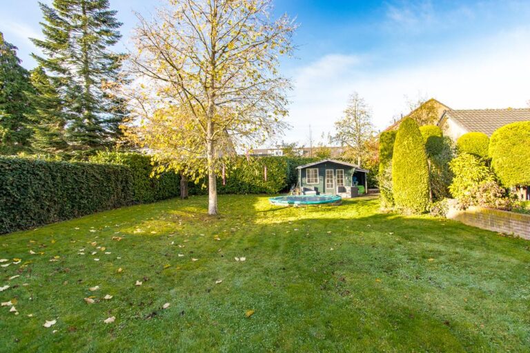 De tuin rondom de woning is verzorgd aangelegd met een terras, gazon, verschillende struikgewassen en plantenborders en beschikt over een vrijstaande garage van maar liefst 30 m². De woning is mooi op het perceel gesitueerd en biedt u behalve sfeervolle zitjes & terrassen ook voldoende privacy. De oprit biedt volop plaats voor het parkeren van meerdere voertuigen.