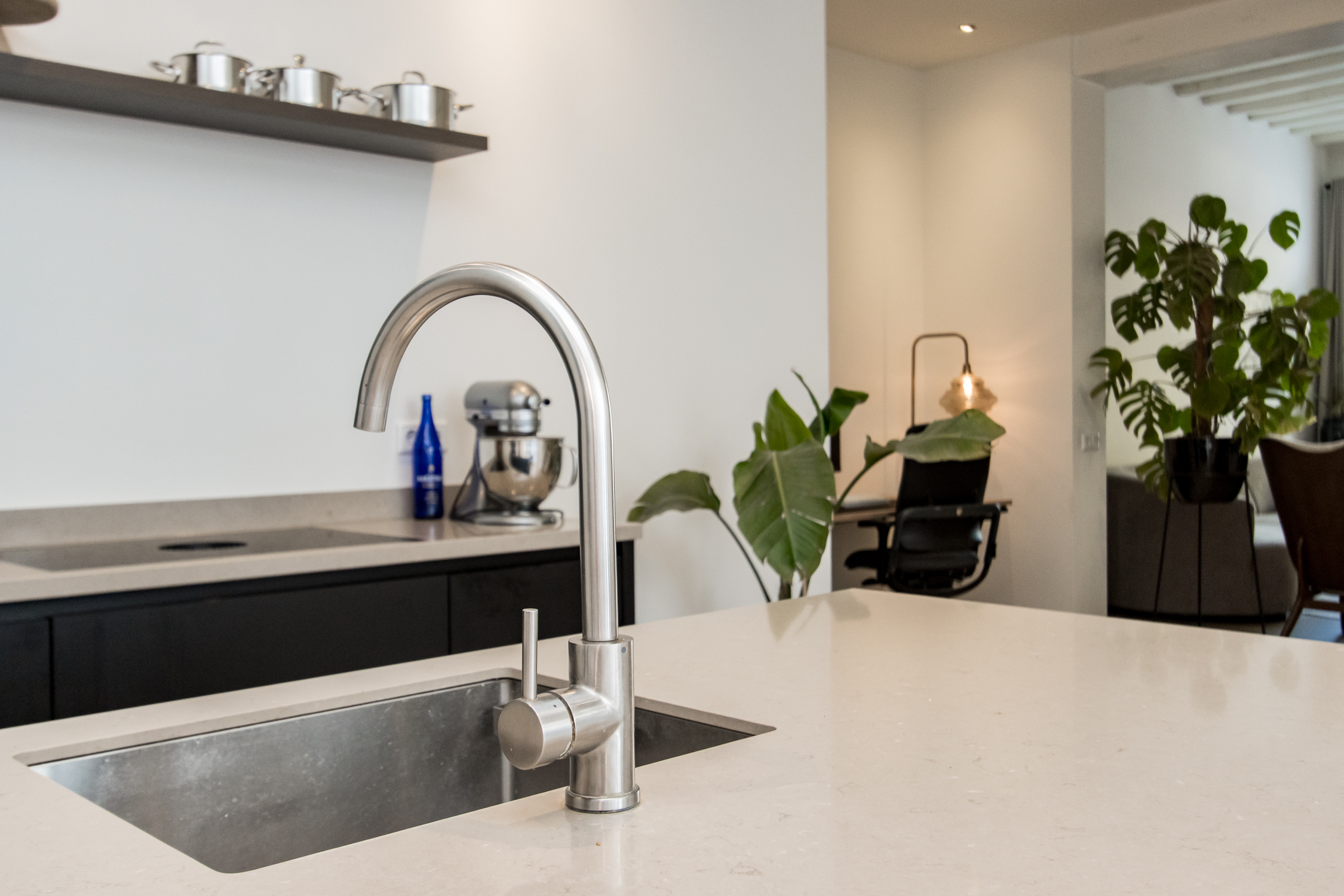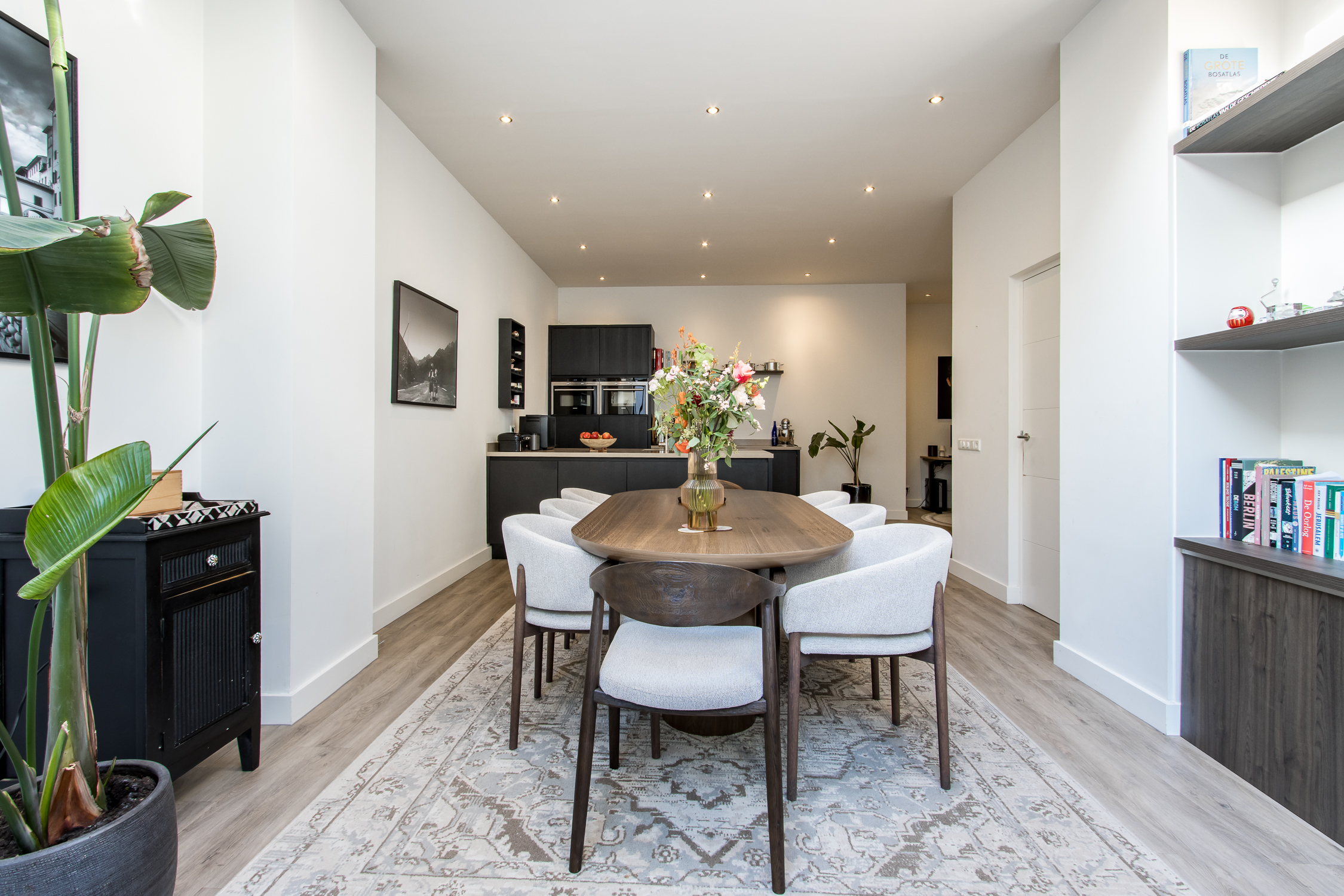 De begane grond is recent gerenoveerd en ademt warmte en sfeer. Aan de voorzijde bevindt zich een knusse zithoek met uitzicht op het gezellige straatbeeld. Achterin ligt de moderne woonkeuken, voorzien van een stijlvol spoeleiland en royale eetkamer. Vanuit hier openen de dubbele tuindeuren naar de onderhoudsvriendelijke stadstuin – een sfeervolle plek waar je in alle rust kunt genieten van de middagzon.