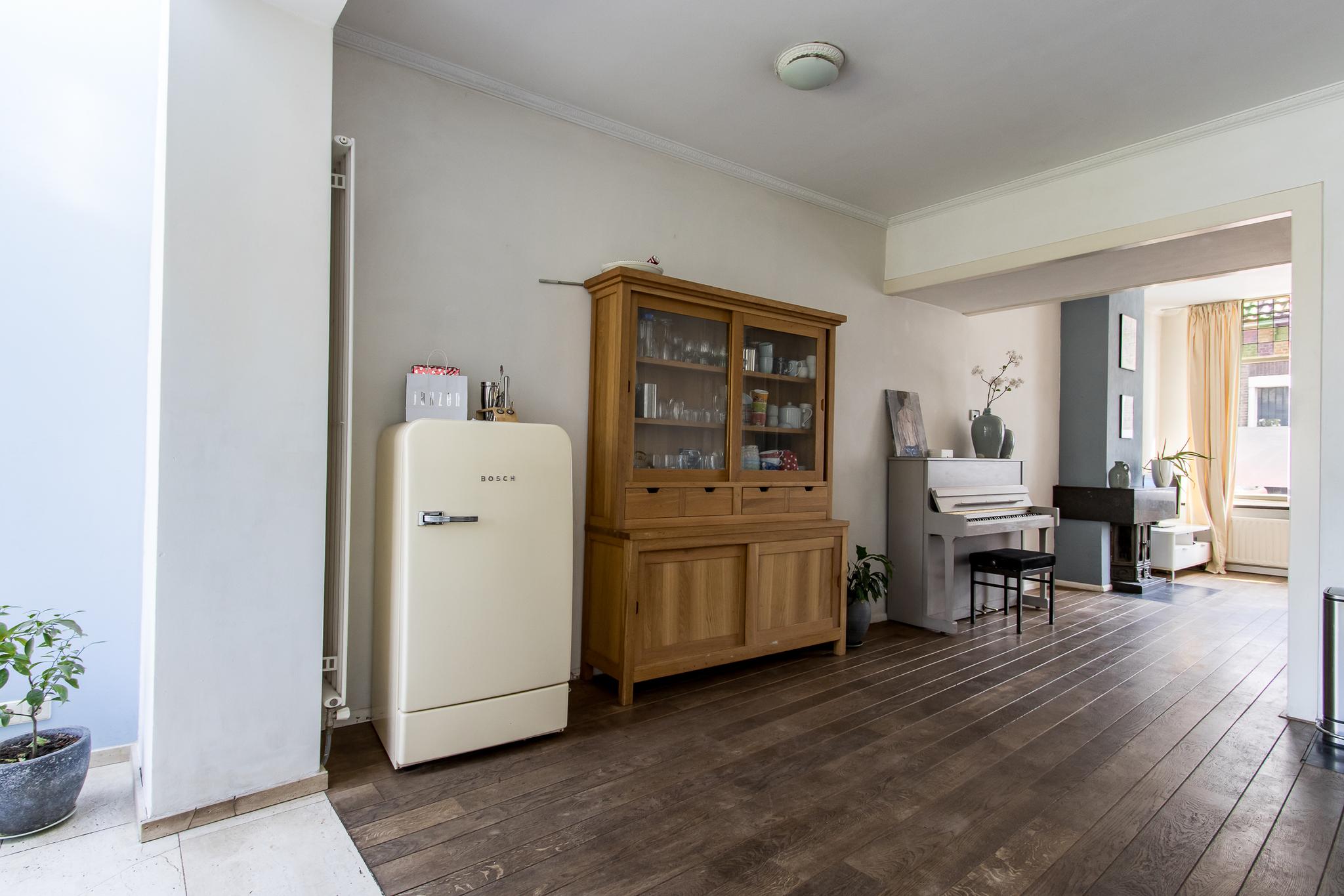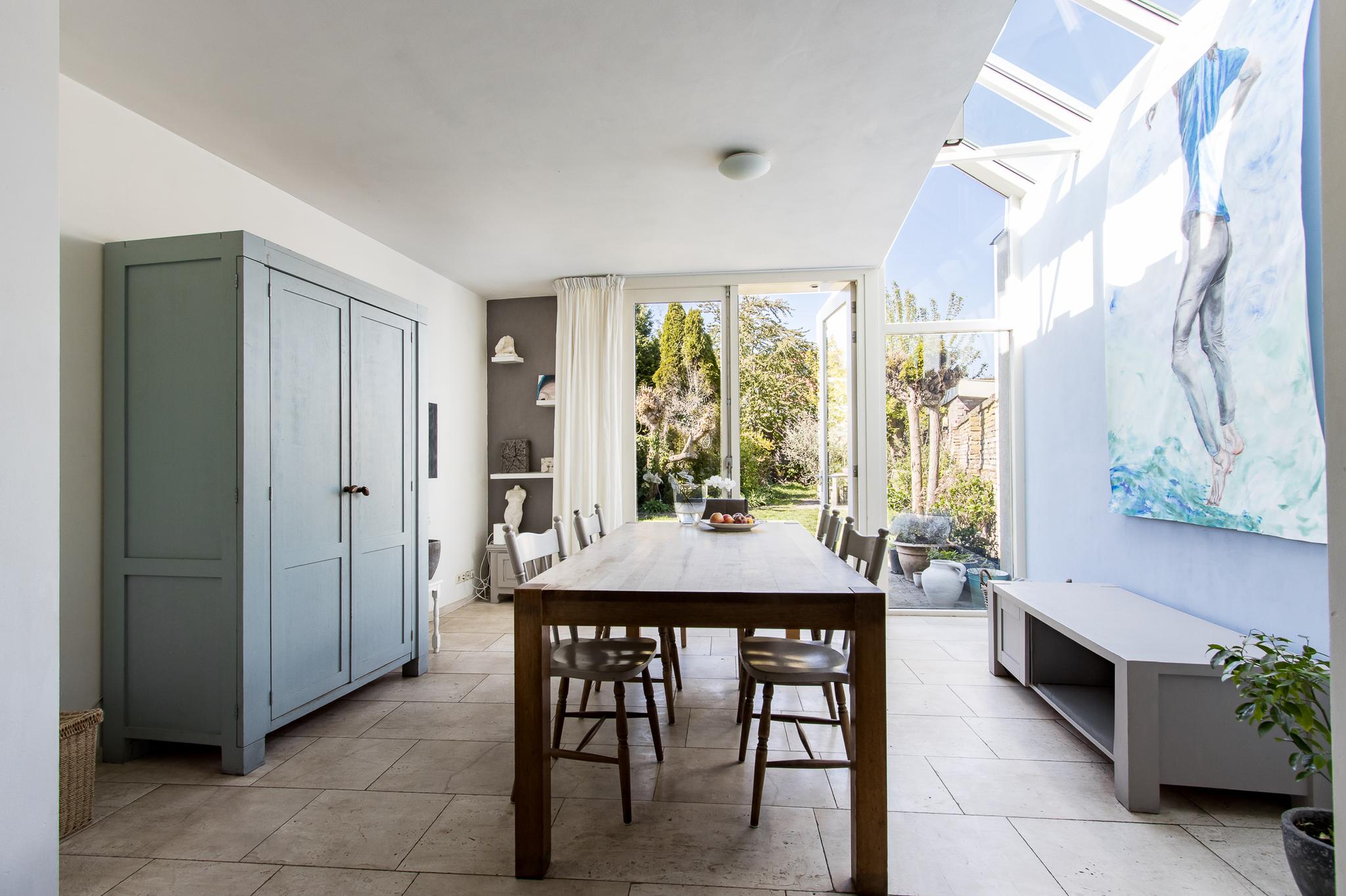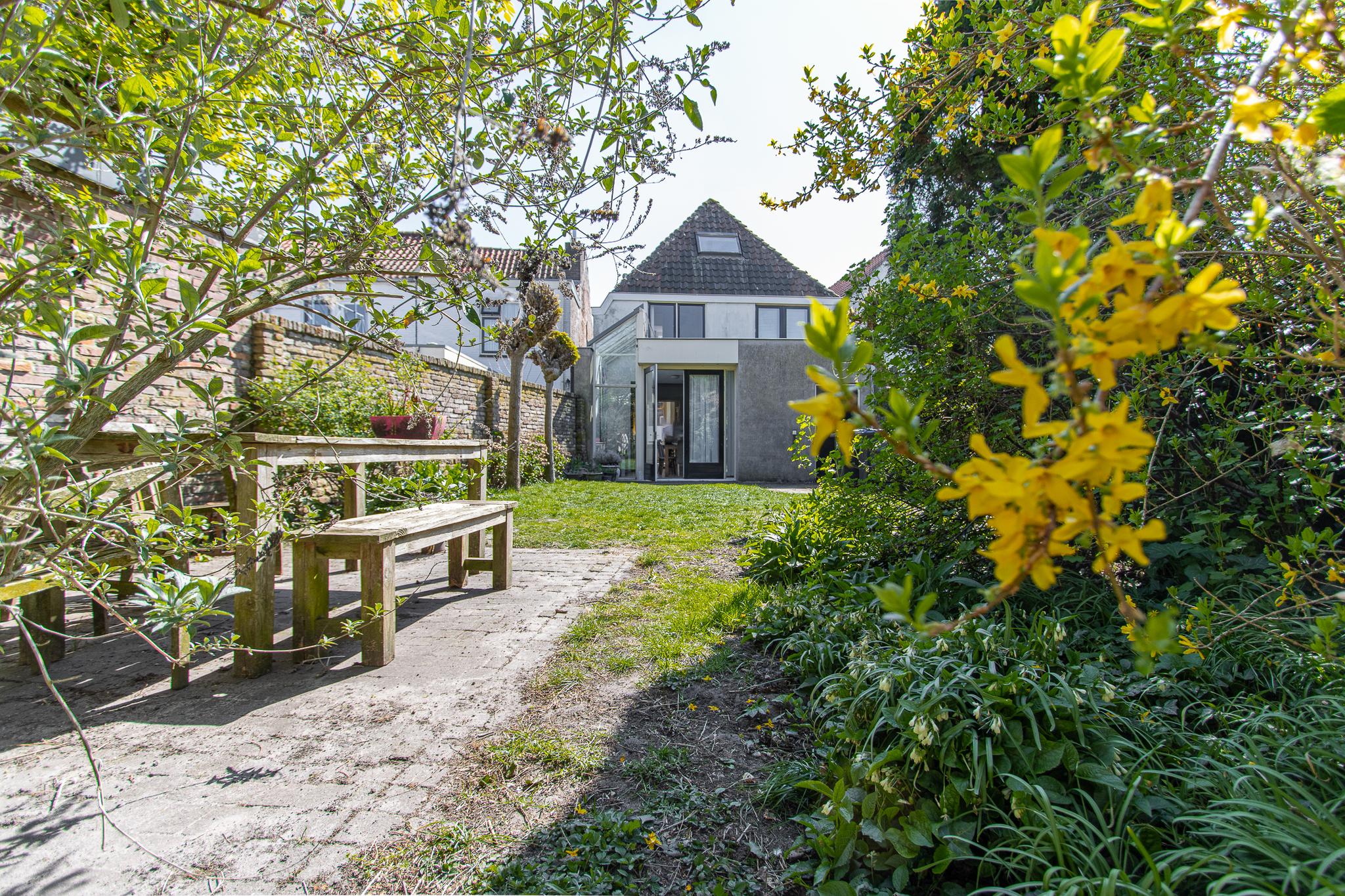 Authentieke details zoals de glas-in-loodramen geven het huis een warme, unieke uitstraling. De uitbouw aan de achterzijde vormt een prachtige tuinkamer: een lichte, uitnodigende ruimte waar je het hele jaar door van het groen in je achtertuin geniet. En wát voor tuin! Diep, beschut en vol privacy — een zeldzaamheid midden in de stad. Of je nu houdt van tuinieren, buiten eten of gewoon in alle rust een boek wilt lezen, hier vind je je plek.
