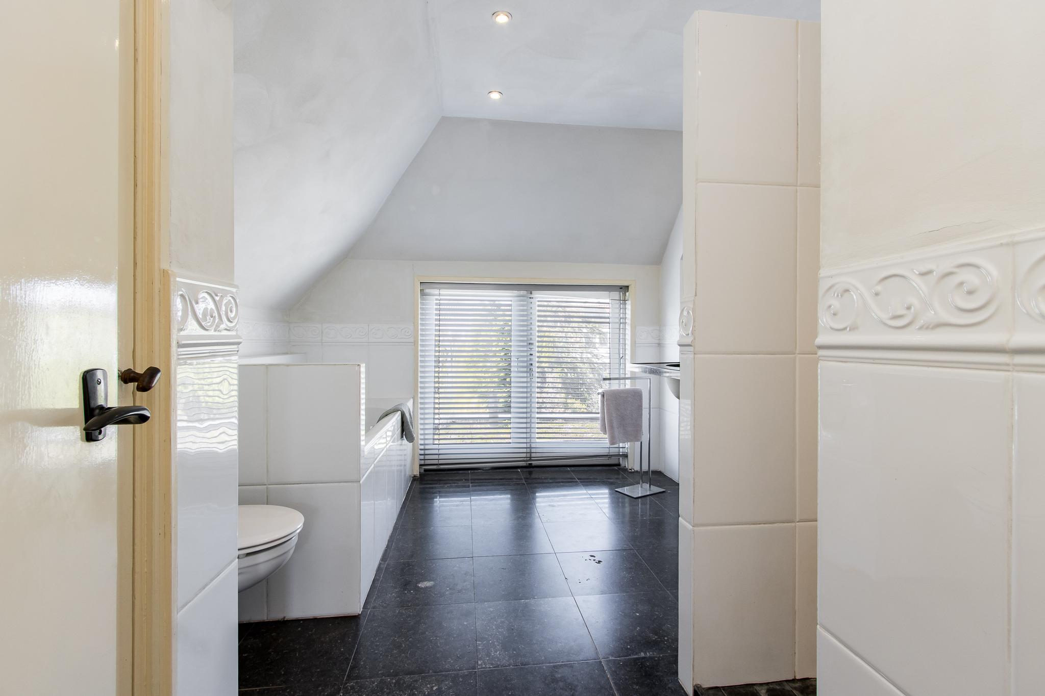 Eerste verdieping: de overloop geeft toegang tot drie slaapkamers en een royale badkamer die is voorzien van een ligbad, dubbele wastafel, wandcloset, ruime inloopdouche en vloerverwarming. Alle slaapkamers beschikken over een eigen vaste kast.