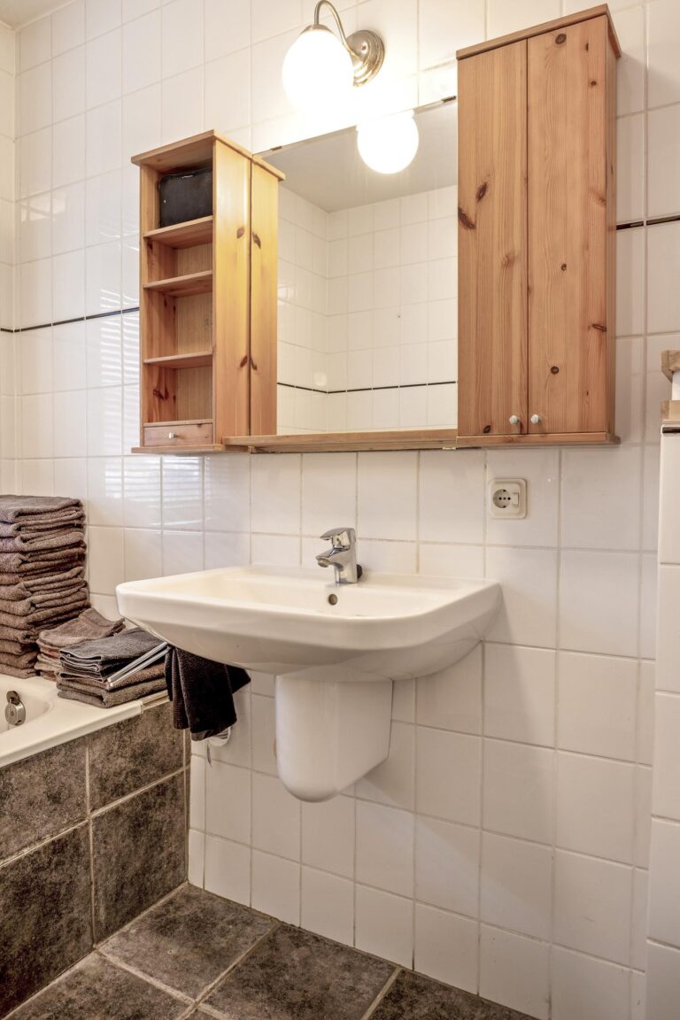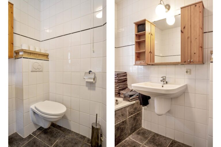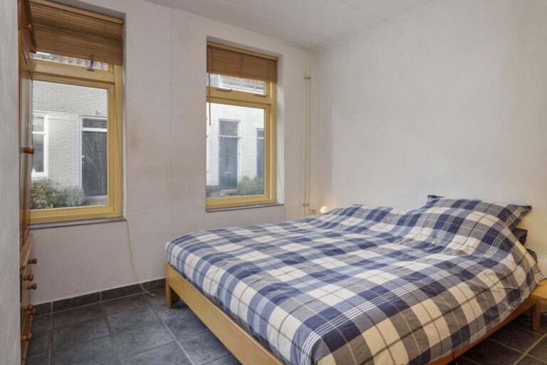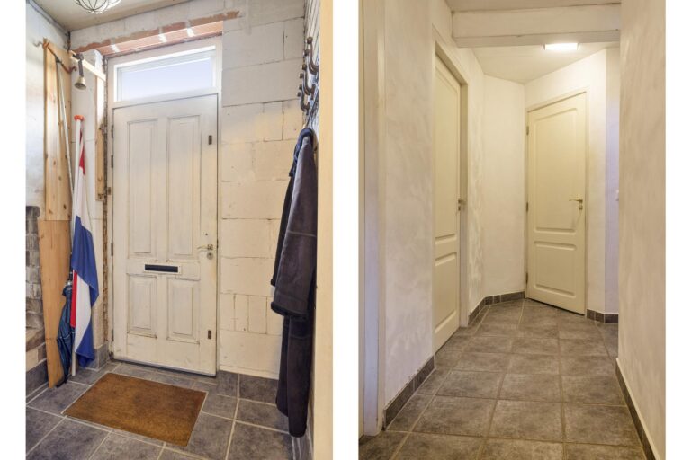 Woonhuis: de entree aan de rechterzijde biedt toegang tot de hal, slaapkamer voorzijde, (slaap)kamer met toegang tot de binnenplaats, badkamer met douche, ligbad, wastafel, toilet en trapopgang naar de eerste verdieping.