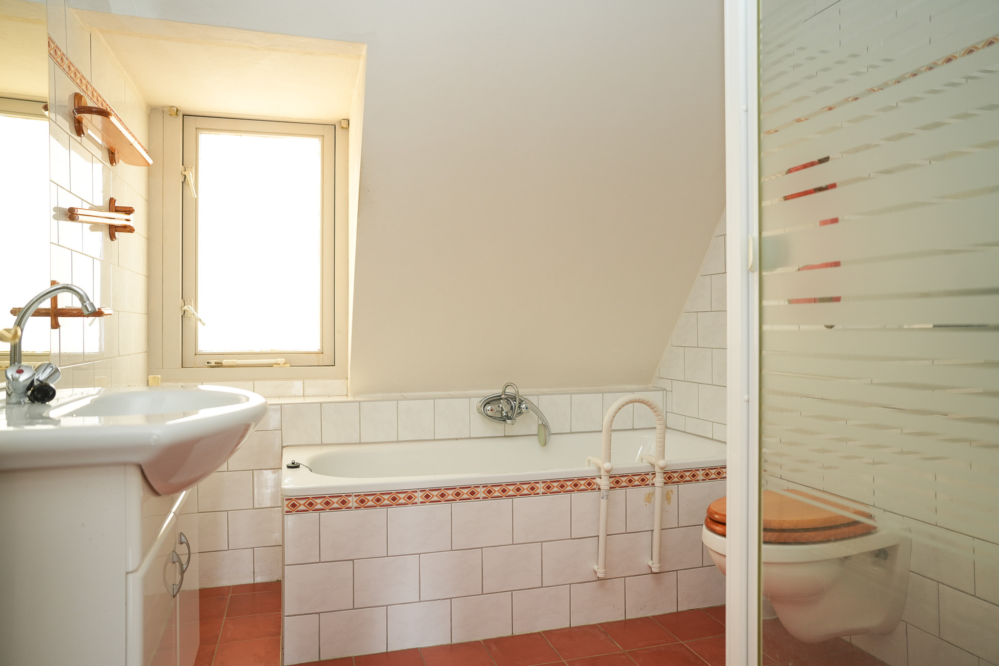 Boven zijn twee prettige slaapkamers en een complete badkamer met douche, ligbad, wastafel en toilet. Via een vlizotrap bereik je de handige vliering – een fijne extra ruimte voor opslag.