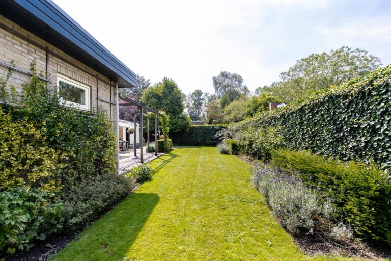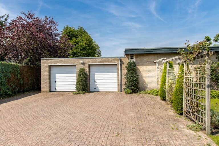 De woning wordt omringd door een weelderige groene tuin met een goed onderhouden gazon met een diversiteit aan beplantingen. Het terras heeft een zonnige ligging op het westen. De aanwezigheid van een dubbele garage met eigen oprit biedt zowel praktisch gemak als een vleugje exclusiviteit aan deze prachtige buitenruimte. Zowel in de zonnige tuin als in de bungalow geniet u optimaal van alle rust & privacy die het riante perceel te bieden heeft.