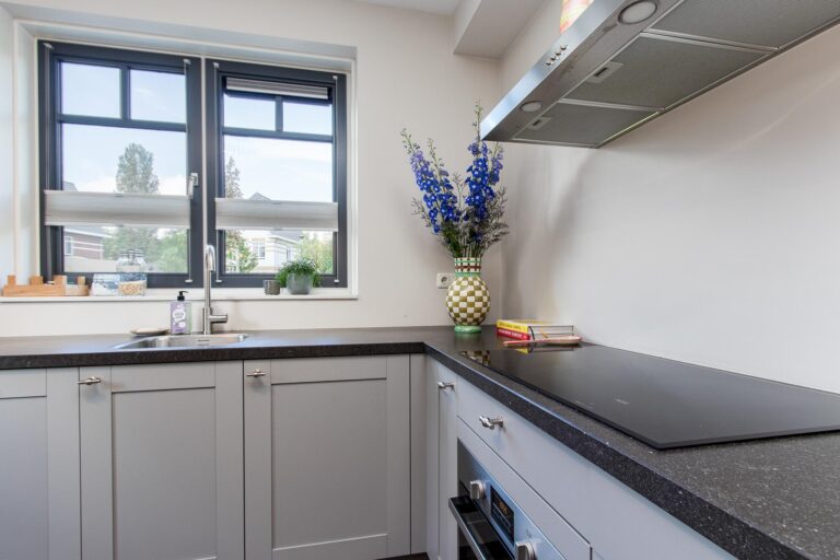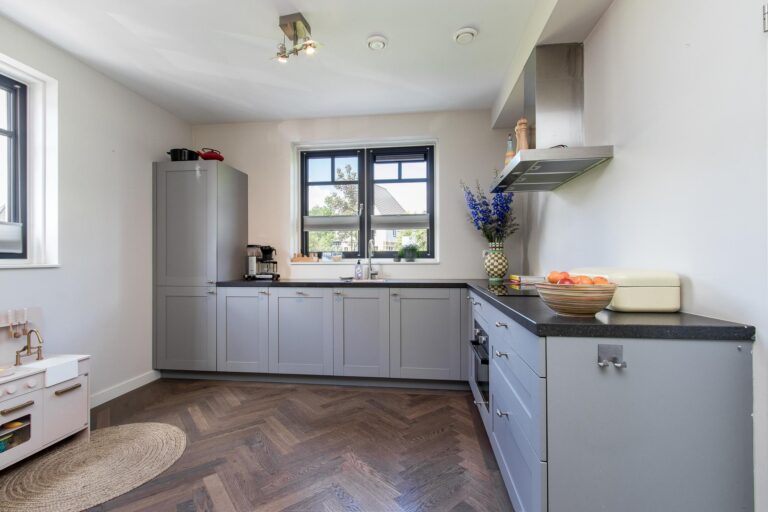 Indeling woonhuis: aan de voorzijde van de woning is de entree gesitueerd. In de hal bevindt zich de meterkast, het toilet en de trapopgang naar de eerste verdieping. De hal geeft toegang tot de sfeervolle woonkamer met loopdeur naar de achtertuin. De woonkamer heeft een open verbinding met de fraaie keuken v.v. L-vormige keukenunit met diverse inbouwapparatuur waaronder een inductie kookplaat, oven, combi-/oven, koel-vriescombinatie en vaatwasser.