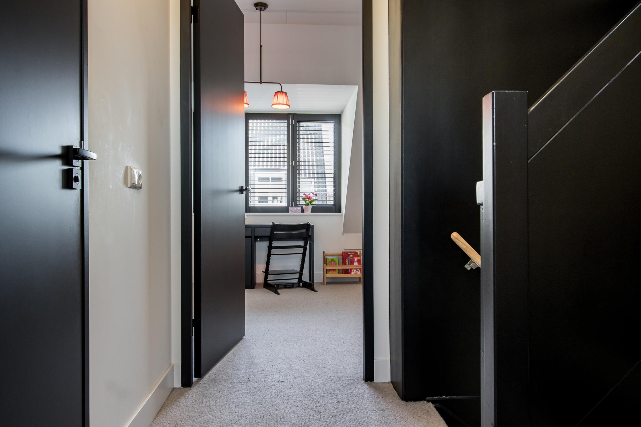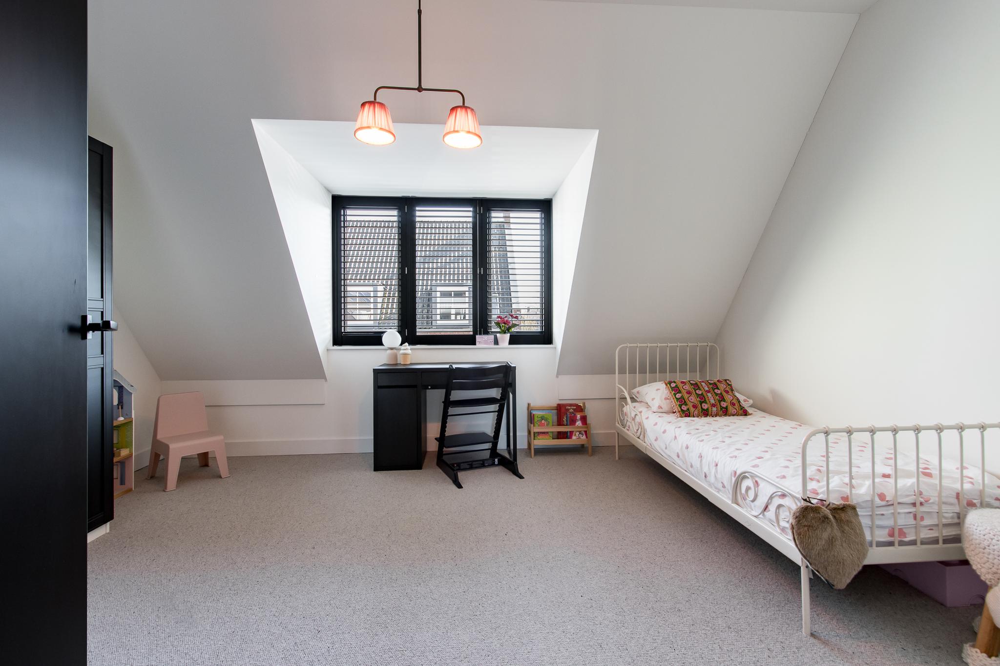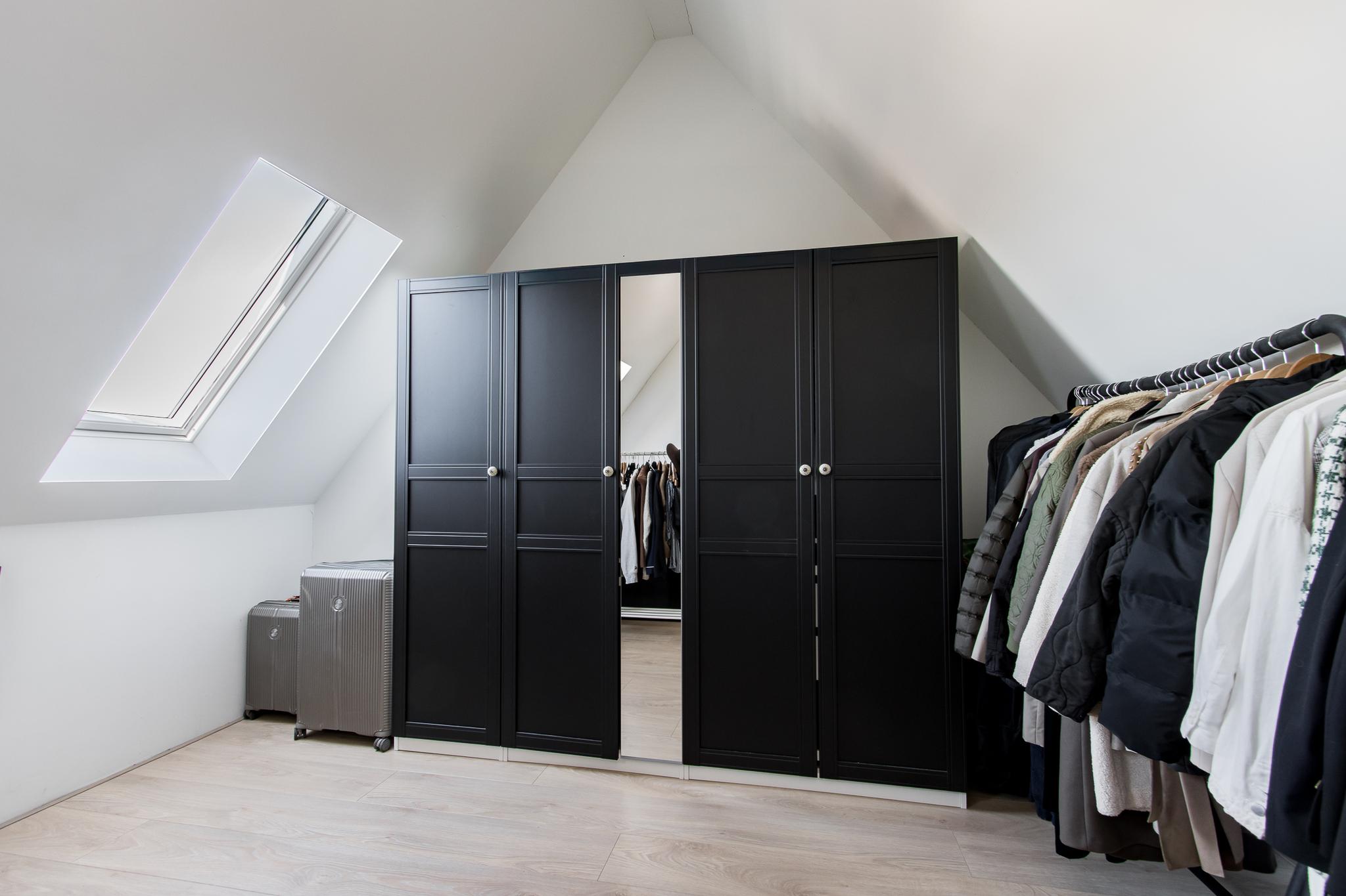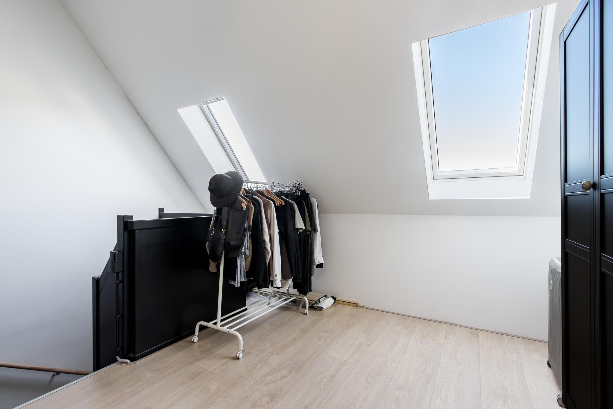Tweede verdieping: een vaste trap leidt naar de royale open zolderruimte, waar de aansluitingen voor witgoed zijn. Dankzij twee dakvensters geniet deze verdieping van volop daglicht, waardoor de ruimte uitstekend geschikt is voor het creëren van een extra (slaap)kamer.