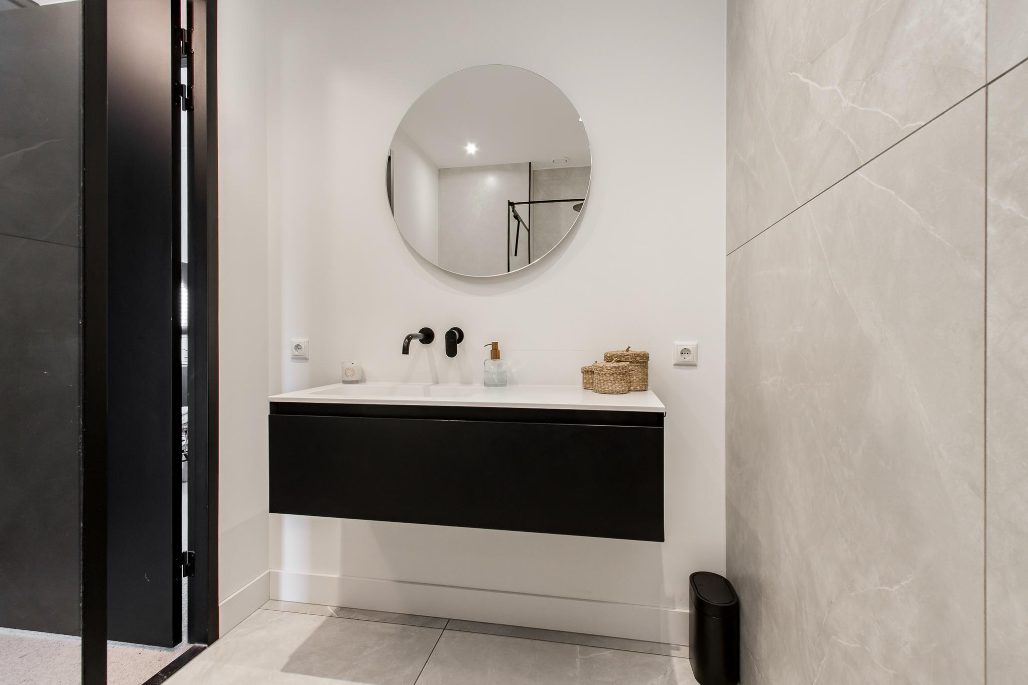 Eerste verdieping: de overloop geeft toegang tot twee ruime slaapkamers en een moderne badkamer, compleet met inloopdouche, wastafelmeubel en tweede toilet.