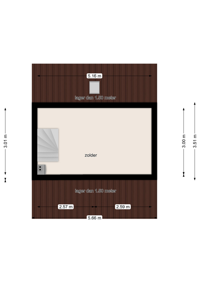 De zolder wordt voorzien van een dakraam van minimaal 1 m².