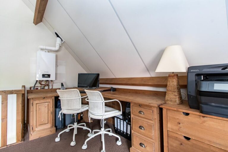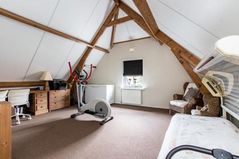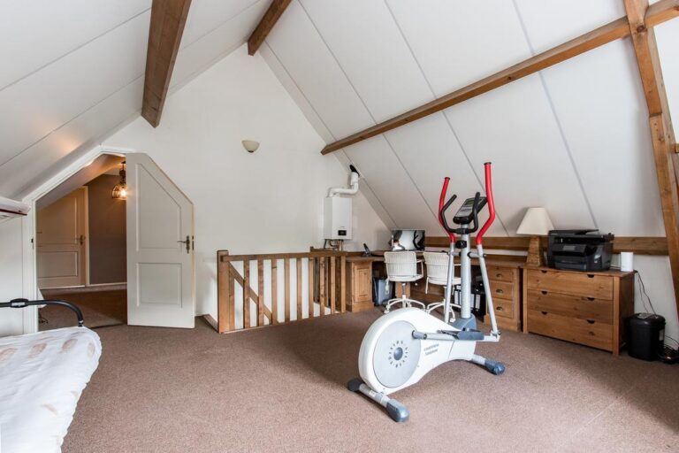 – de bergzolder boven de garage is bereikbaar via een trap in de garage alsmede via de overloop op de verdieping van het woonhuis. De bergzolder kan prima worden ingericht als hobbykamer of werkkamer en maakt het geheel hiermee tevens geschikt voor wonen en werken aan huis.